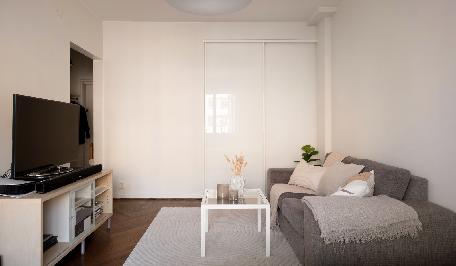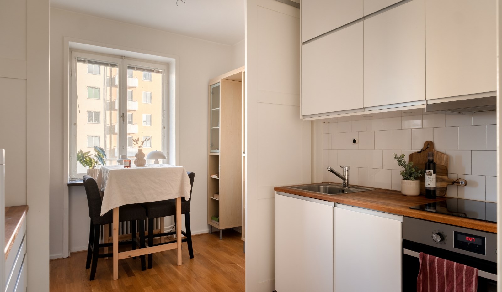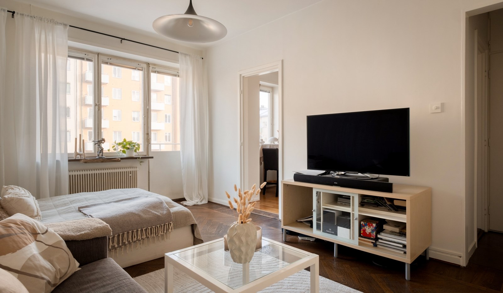 På fjärde våningen, helt utan insyn, hittar du denna ljusa och yteffektiva 1,5-rumslägenhet om 39 m². Bostaden är belägen i lugna och tysta kvarter i hjärtat av Gärdet, i ett charmigt funkishus med bevarade originaldetaljer som ger hemmet en tidlös och stilfull karaktär.