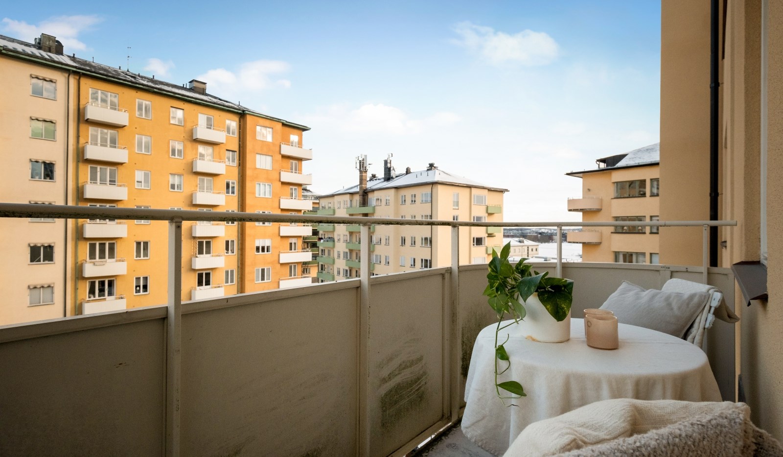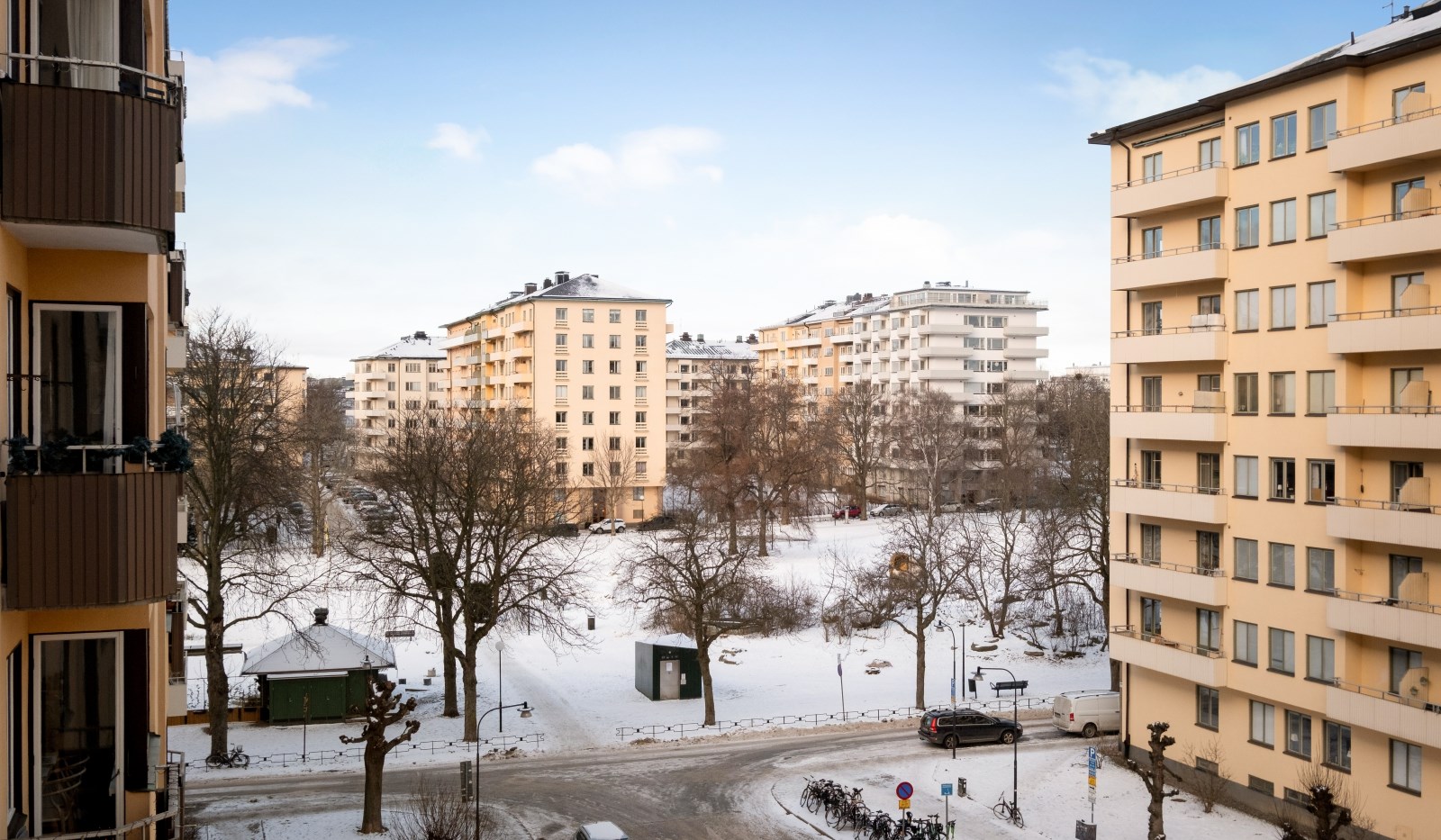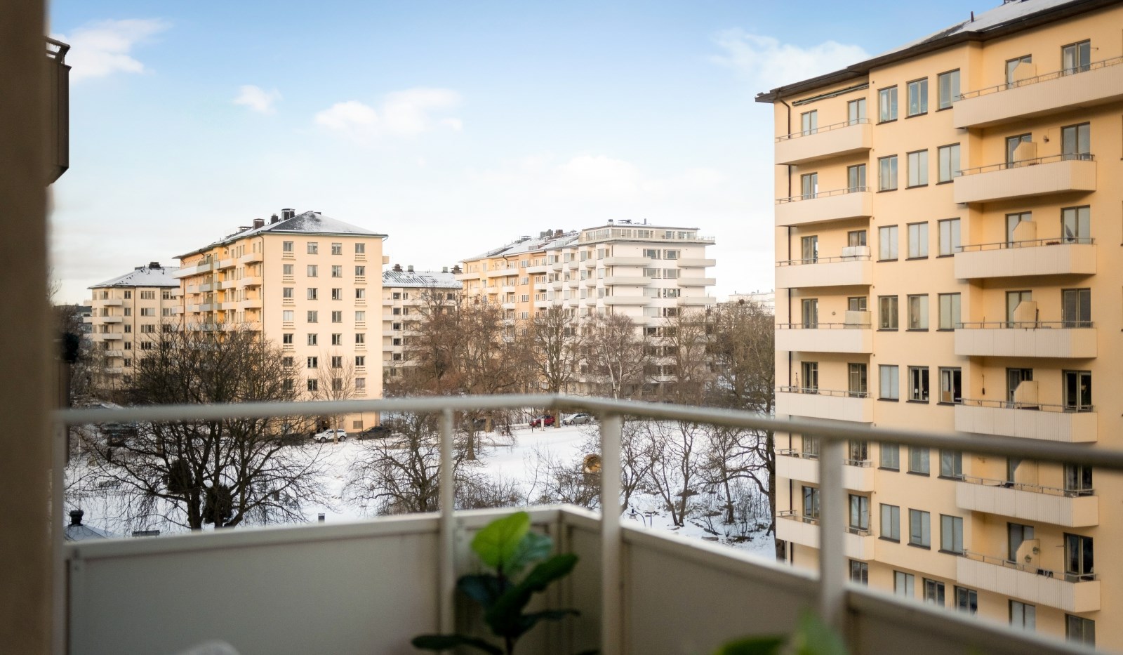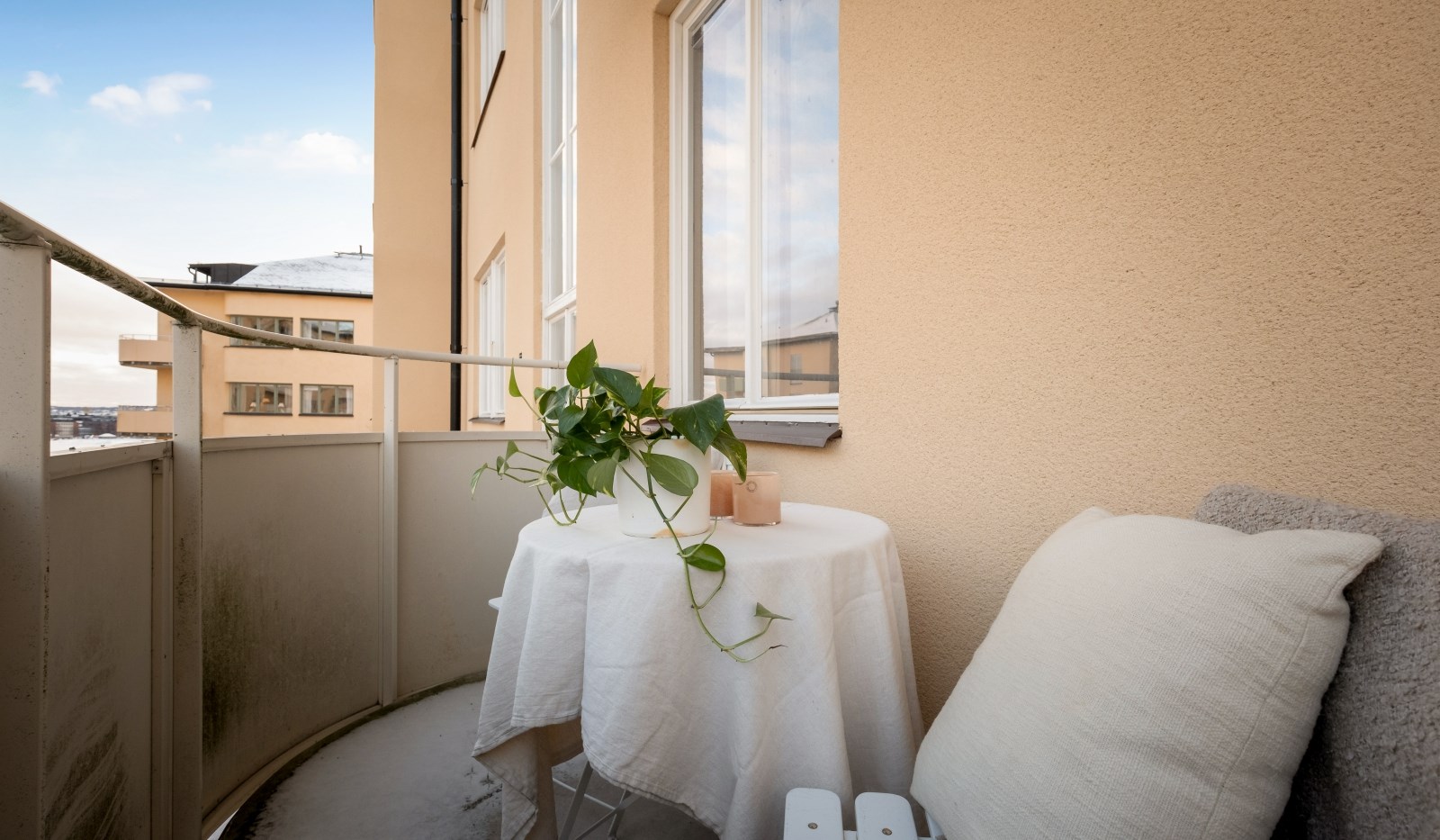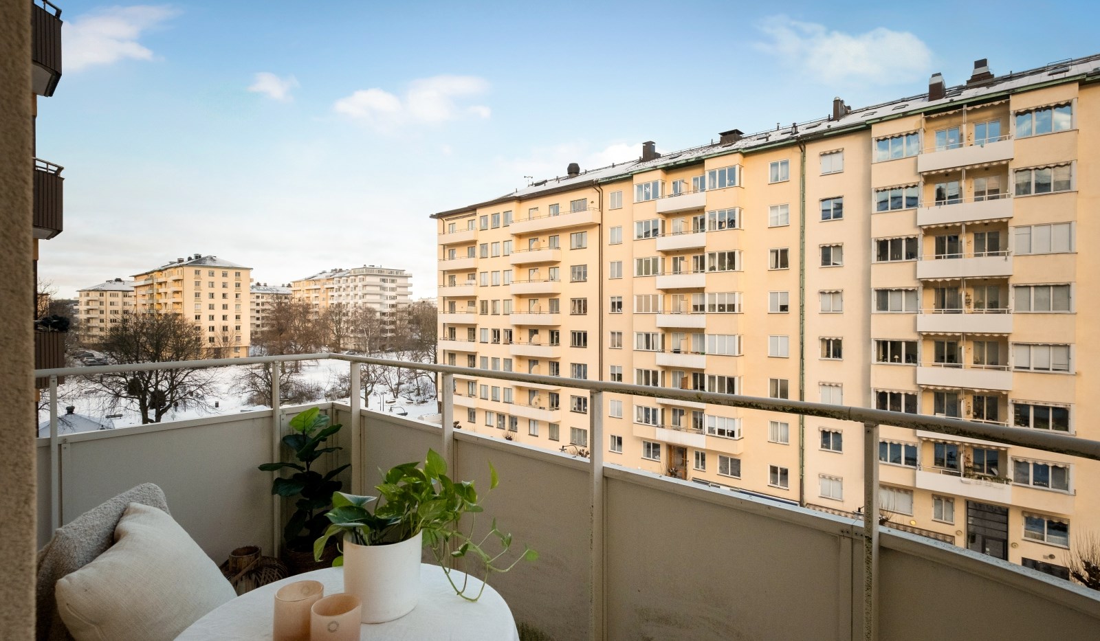 Det höga läget bjuder på ett generöst ljusinsläpp och en rofylld utsikt över grönska och Tessinparken. Från vardagsrummet når du den härliga balkongen – perfekt för avkoppling i solen, med naturen som närmsta granne.