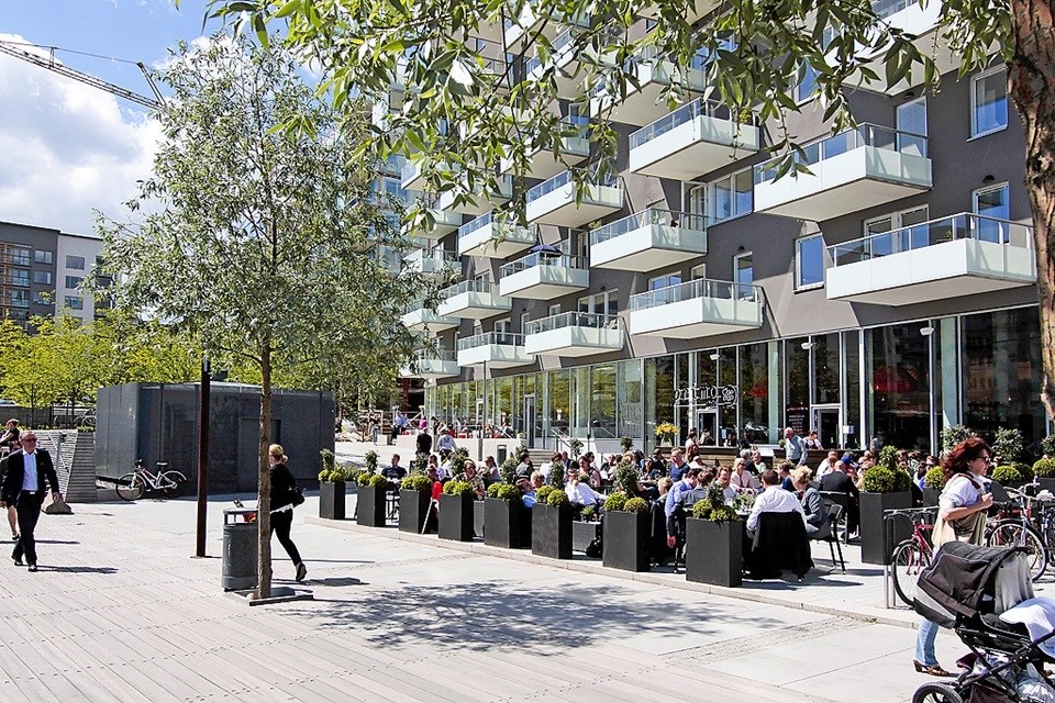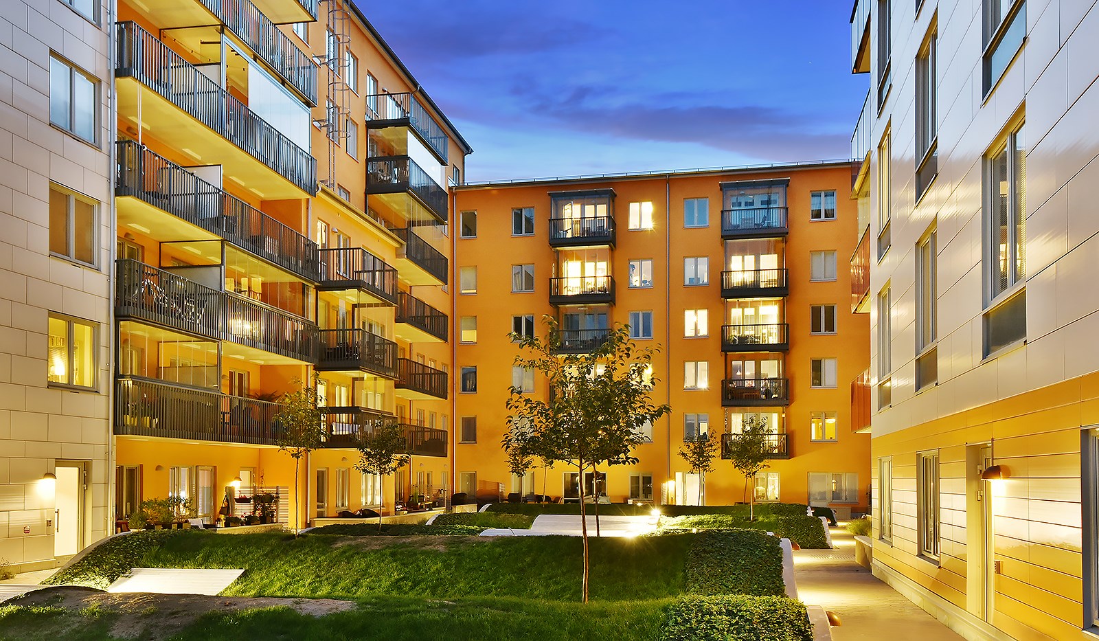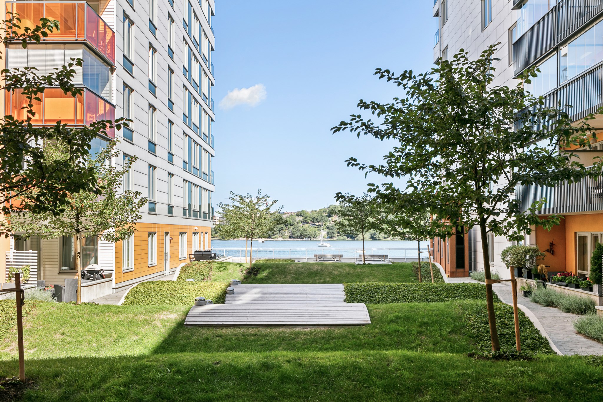 Föreningen har även en fin belyst innergård med gräsytor och flera sittgrupper med fantastisk utsikt över Årstaviken.