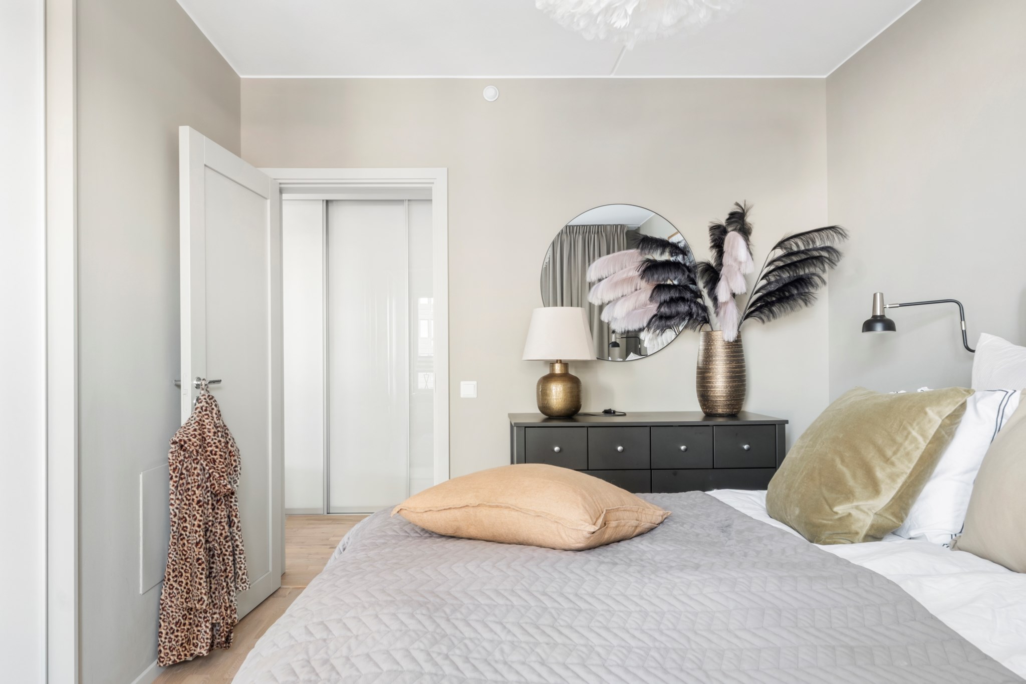 Två välplanerade sovrum med rogivande lägen och bra förvaringsmöjligheter. Master bedroom erbjuder en lugn och harmonisk atmosfär, medan det andra rummet passar utmärkt som barnrum, gästrum eller kontor. Det andra sovrummet har också en bra inredd klädkammare och vacker utsikt.