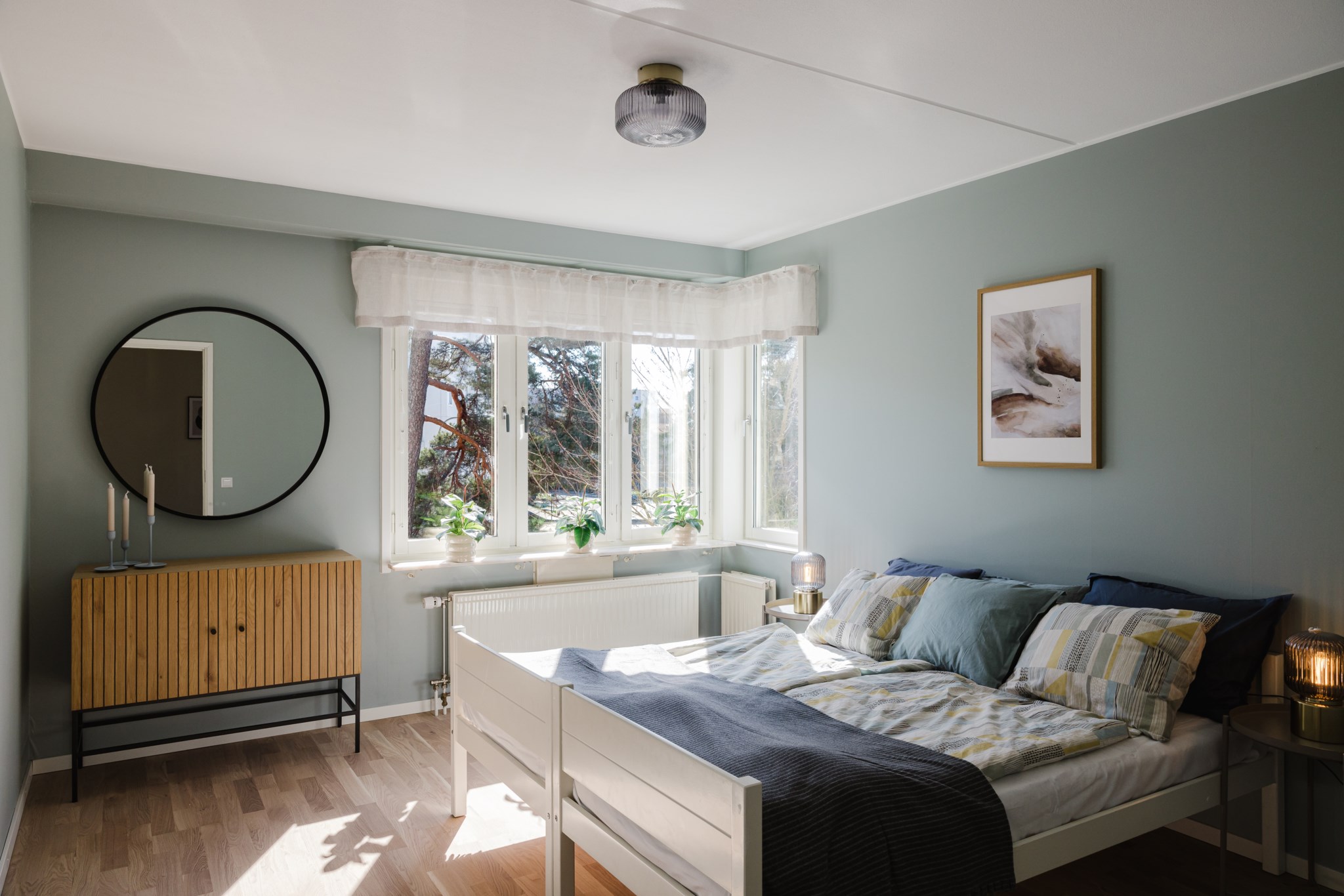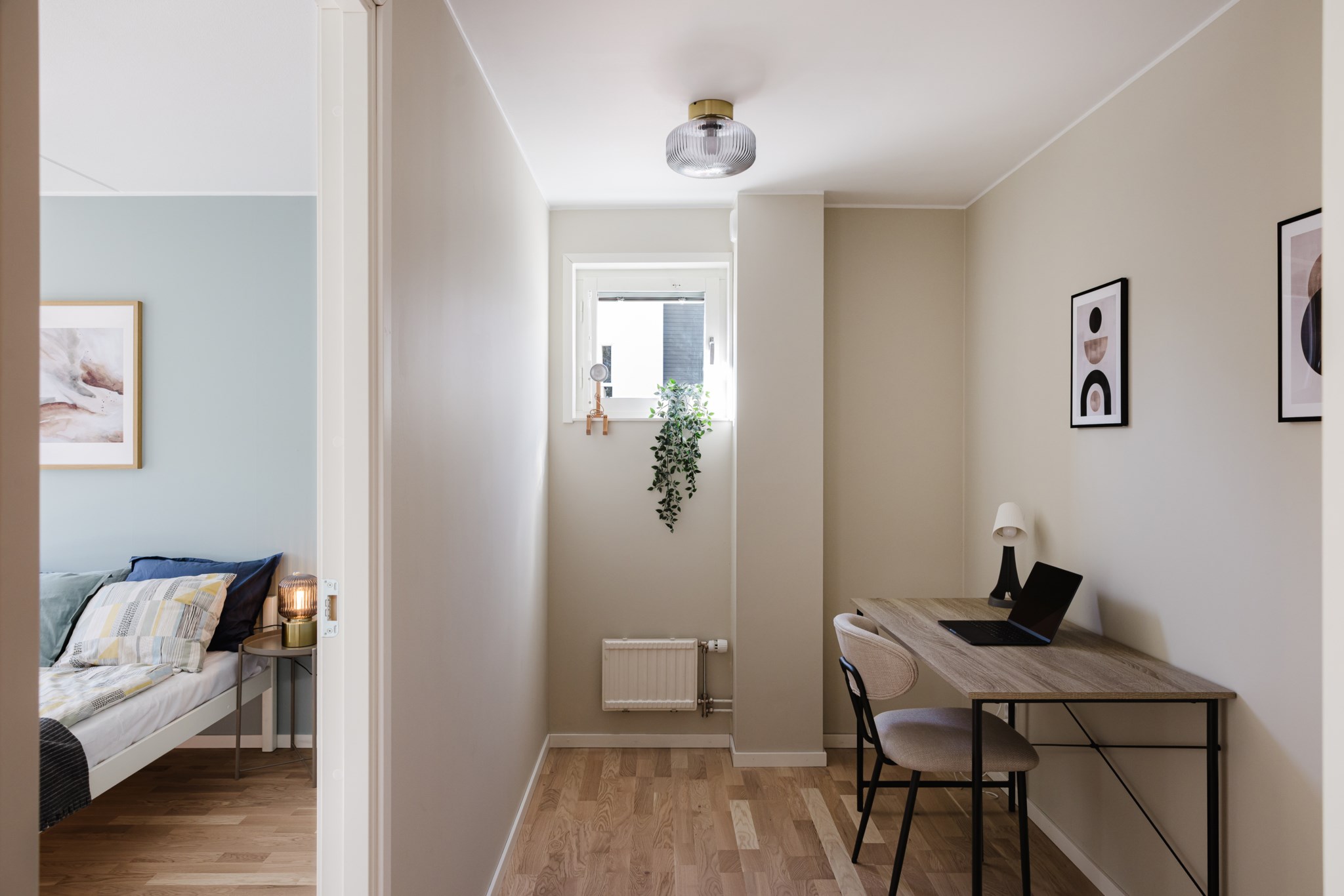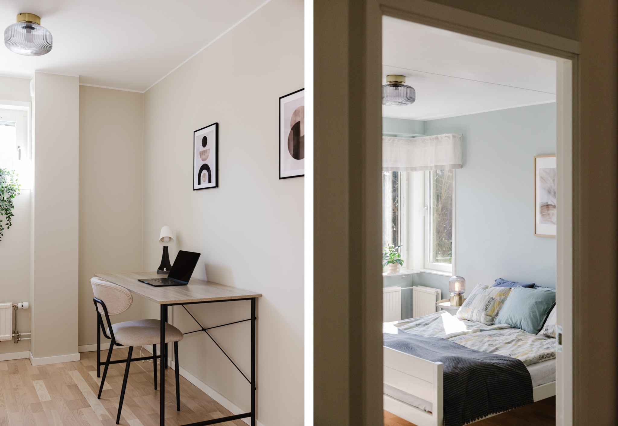 Lägenheten har två bra sovrum samt ett kontor/gästrum eller varför inte använda det som hobbyrum? Båda sovrummen är stora och man får plats med säng och eventuell garderobsförvaring. Kontor/ gästrum har ett mindre fönster ut, här får man plats med en mindre säng eller skrivbord.