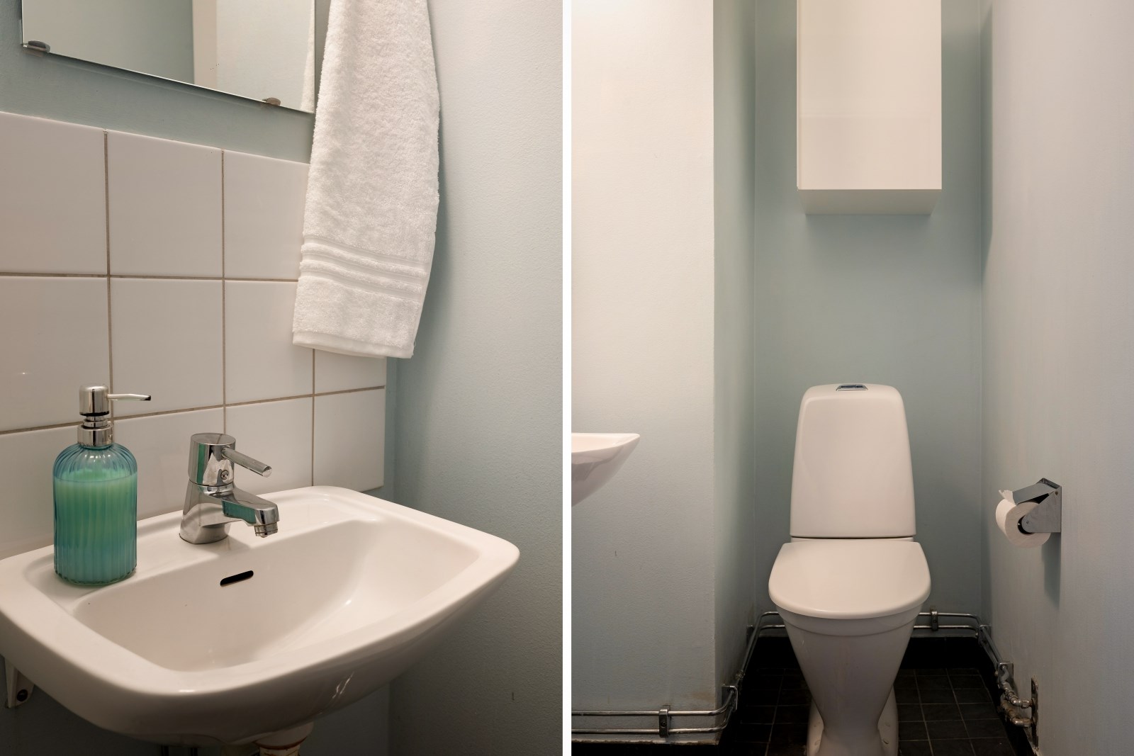 Praktisk separat gäst-wc med wc och handfat, bekvämt placerad i inre hall – perfekt vid besök och för den större familjen.
