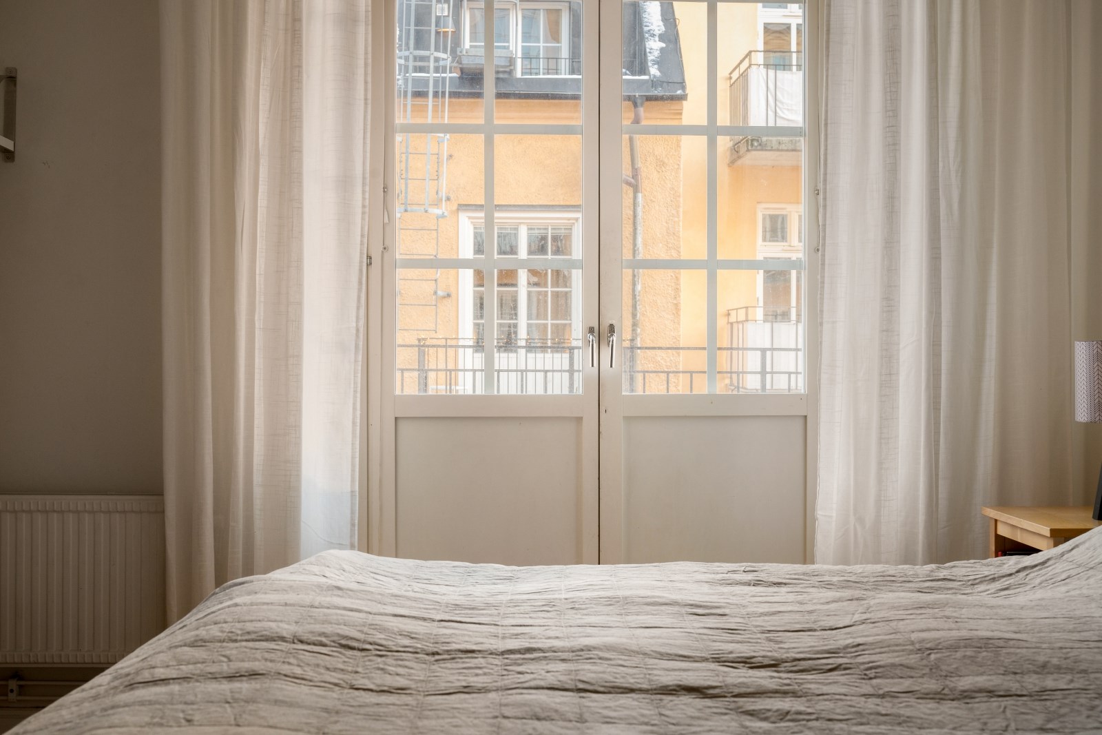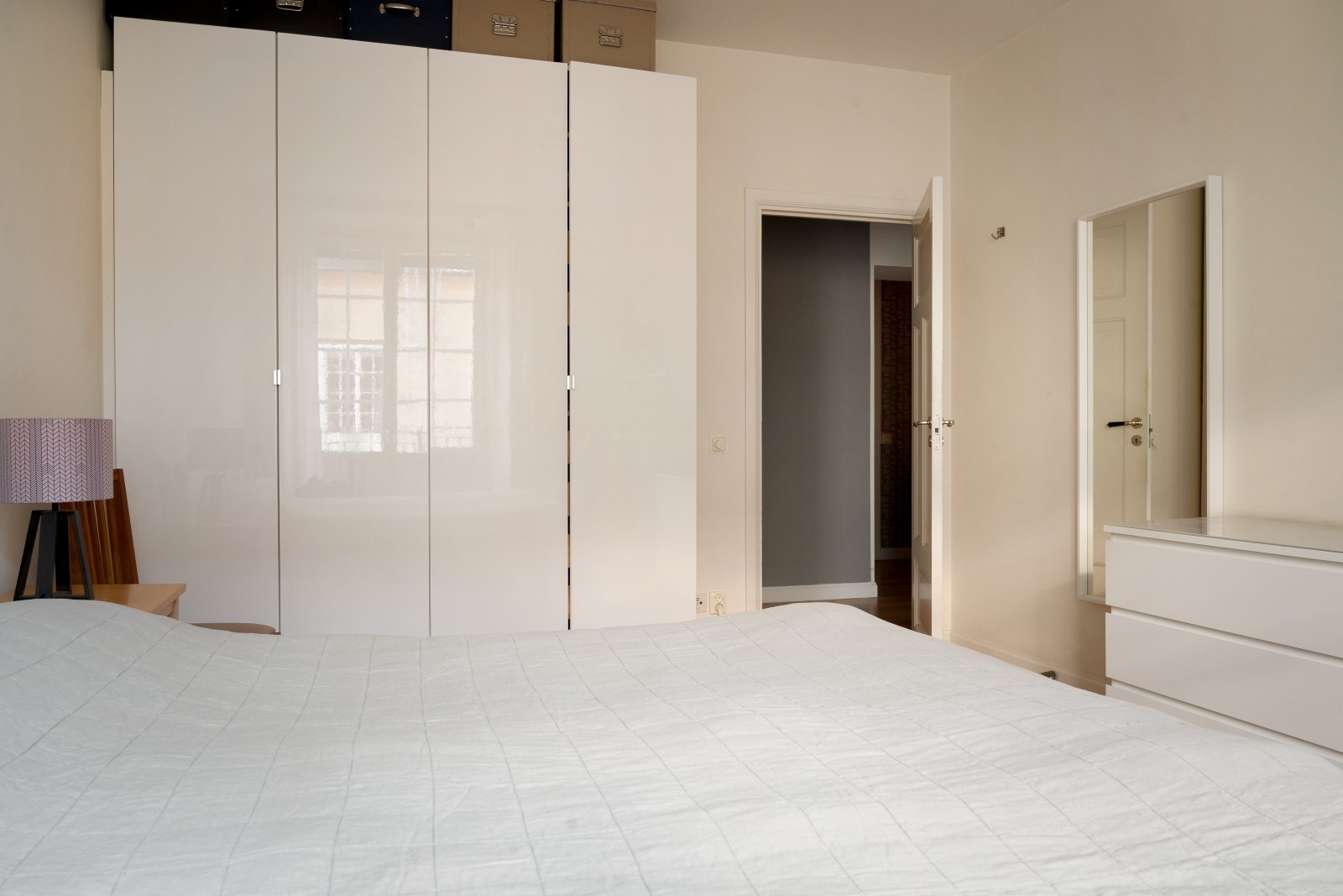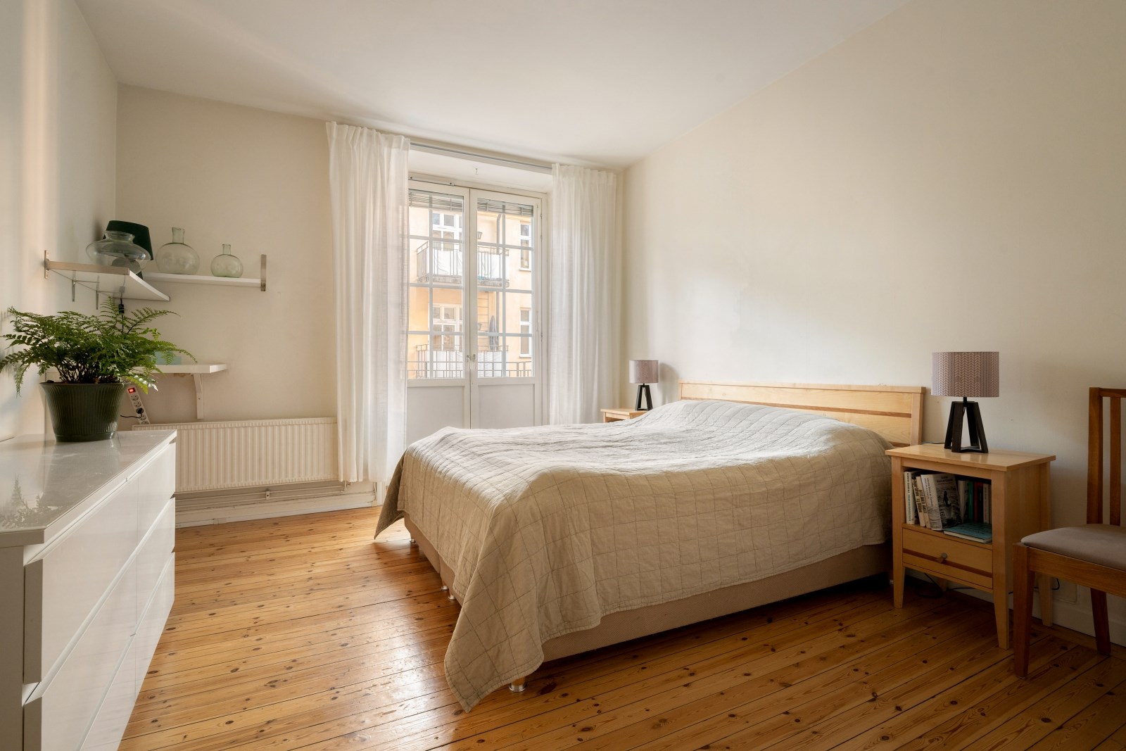 Stor och rofylld master bedroom med plats för större säng, skrivbord, garderober och ytterligare möblemang. Härifrån nås den möblerbara balkongen i lugnt gårdsläge.