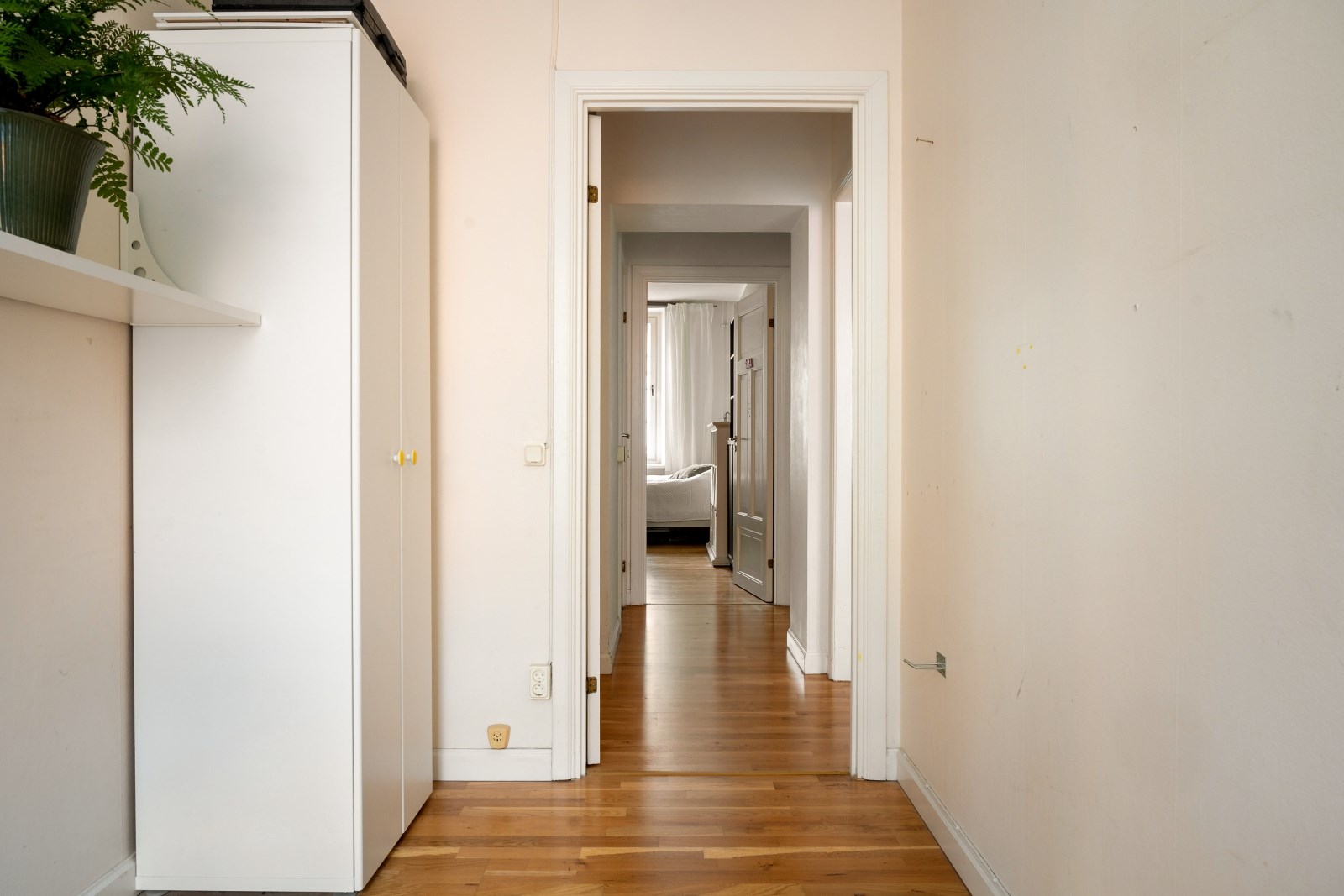 Inre hall ansluter till två sovrum mot innergården. Här finns även bostadens gäst-wc samt en rymlig klädkammare med goda förvaringsmöjligheter.
