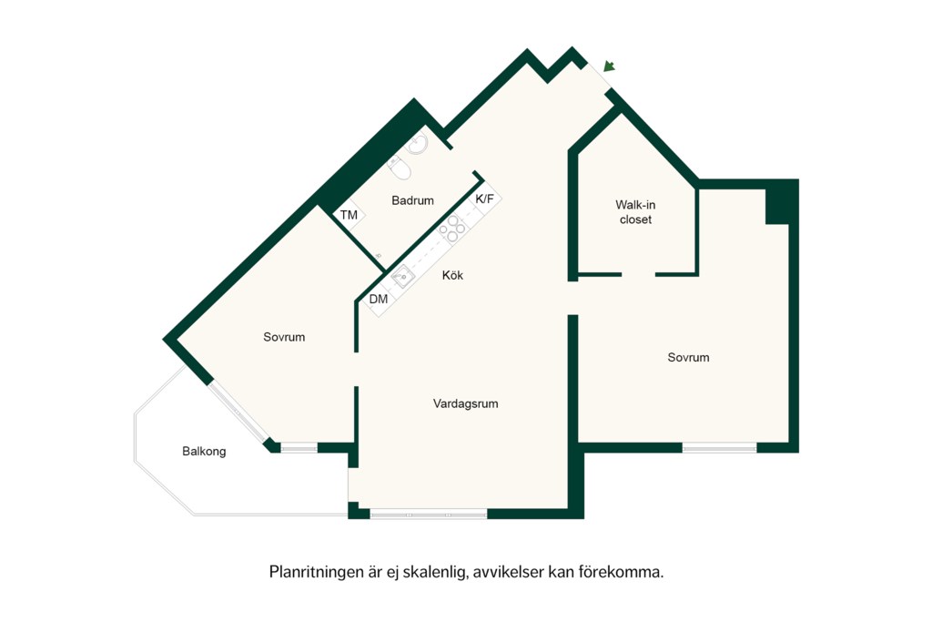 Även detta sovrum är ljust och generöst tilltaget med stora fönsterpartier som vetter ut mot bostadens balkong. Passar perfekt som barnrum, gästrum eller hemmakontor. Här finns plats för säng, skrivbord och förvaring efter behov.