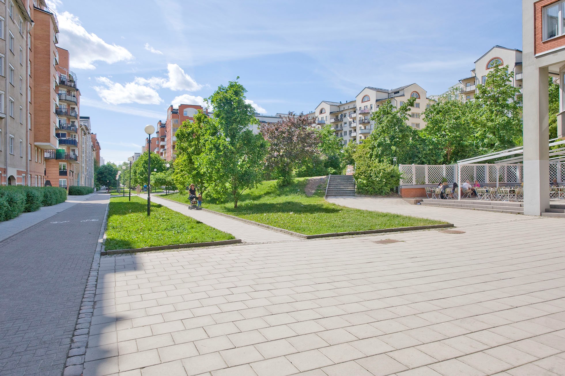 Här bor du lugnt och bekvämt i hjärtat av Södermalm intill vackra Swedenborgsgatan som binder ihop det gamla Söder med det nya. Gatan har numera blivit gågata sommartid med ett myllrande folkliv. Här finner du populära O'pizzicato, Bistro Süd och Rival vid Mariatorget. Medborgarplatsen, Skrapan och Saluhallen ligger på kort promenadavstånd.