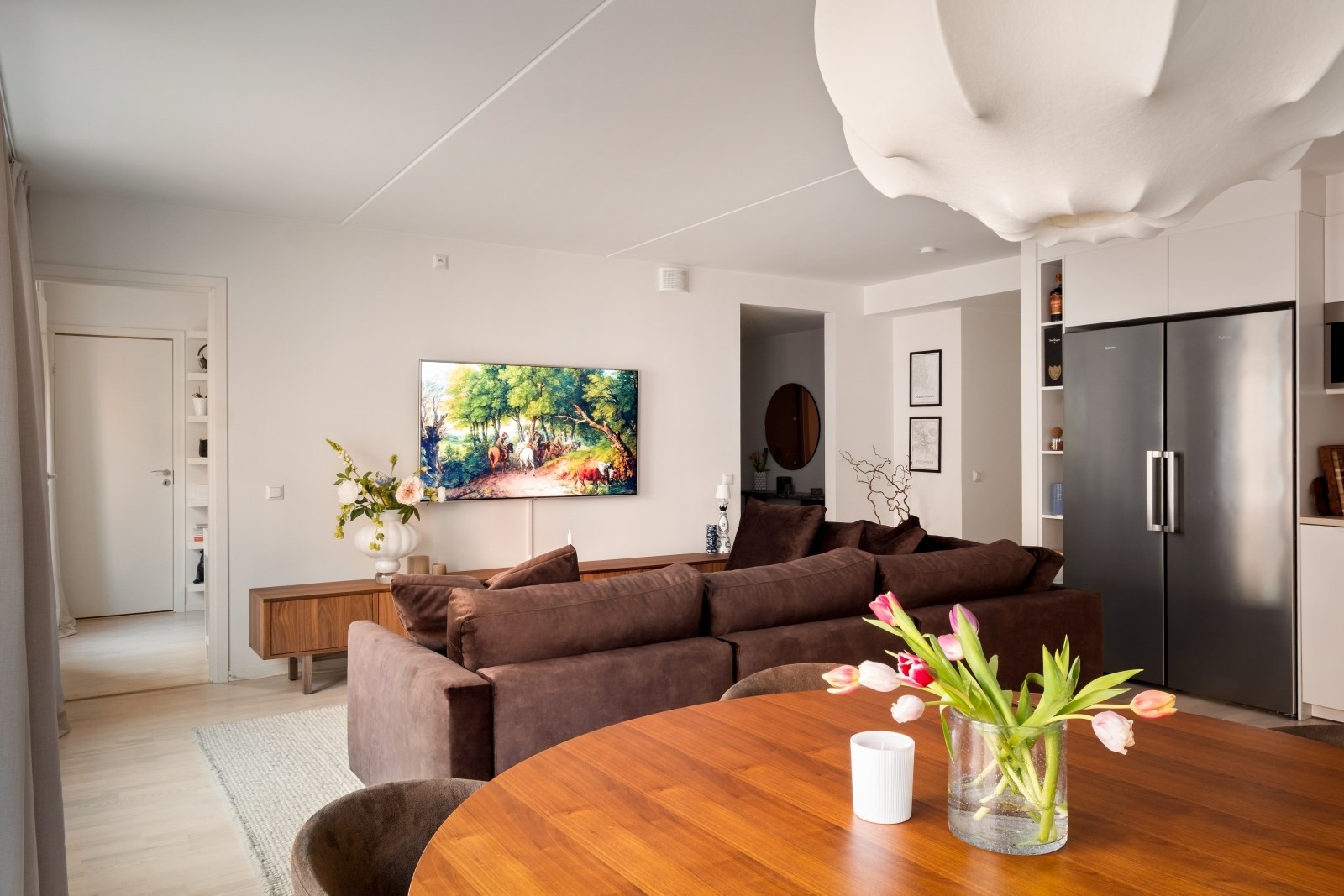 Stilren och nyproducerad bostadsrätt om 89 kvm med 4 rum och kök. Genomtänkt planlösning, generöst ljusinsläpp och exklusiva materialval skapar ett elegant och tidlöst hem.