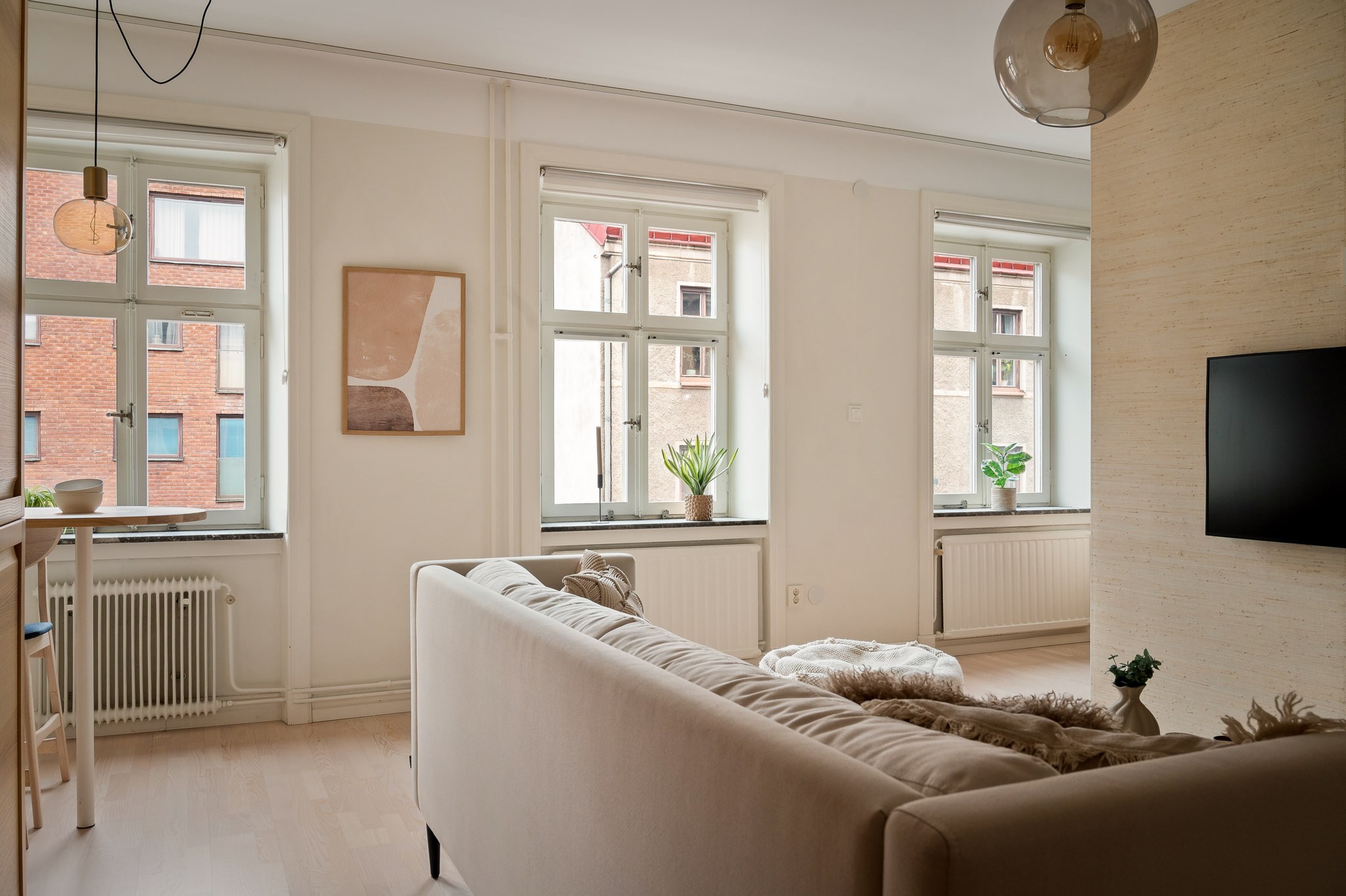 I vacker sekelskiftesfastighet från 1885-1886 och med eftertraktat läge ligger denna kvadratsmarta 1,5a som kan bli en 2:a. Lägenheten är genomgående renoverad och här möts man av ett vackert ljusinsläpp från tre vackra fönster med djupa fönsternischer. Planlösningen erbjuder alla funktioner man behöver med trivsamma sociala ytor med öppen planlösning mellan vardagsrum och kök samt separat sovrumsdel med plats för dubbelsäng och förvaring. Smakfullt renoverat kök. Här bor man med ett brett utbud av restauranger, caféer och butiker i närmsta kvarteren.