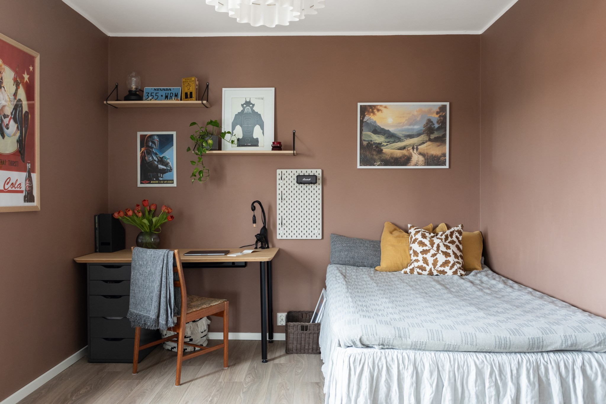 Här finns gott om plats för säng, skrivbord och förvaring, vilket gör rummet idealiskt som barnrum, gästrum eller hemmakontor. Den lugna basen gör det enkelt att sätta sin egen prägel – oavsett behov eller livssituation.