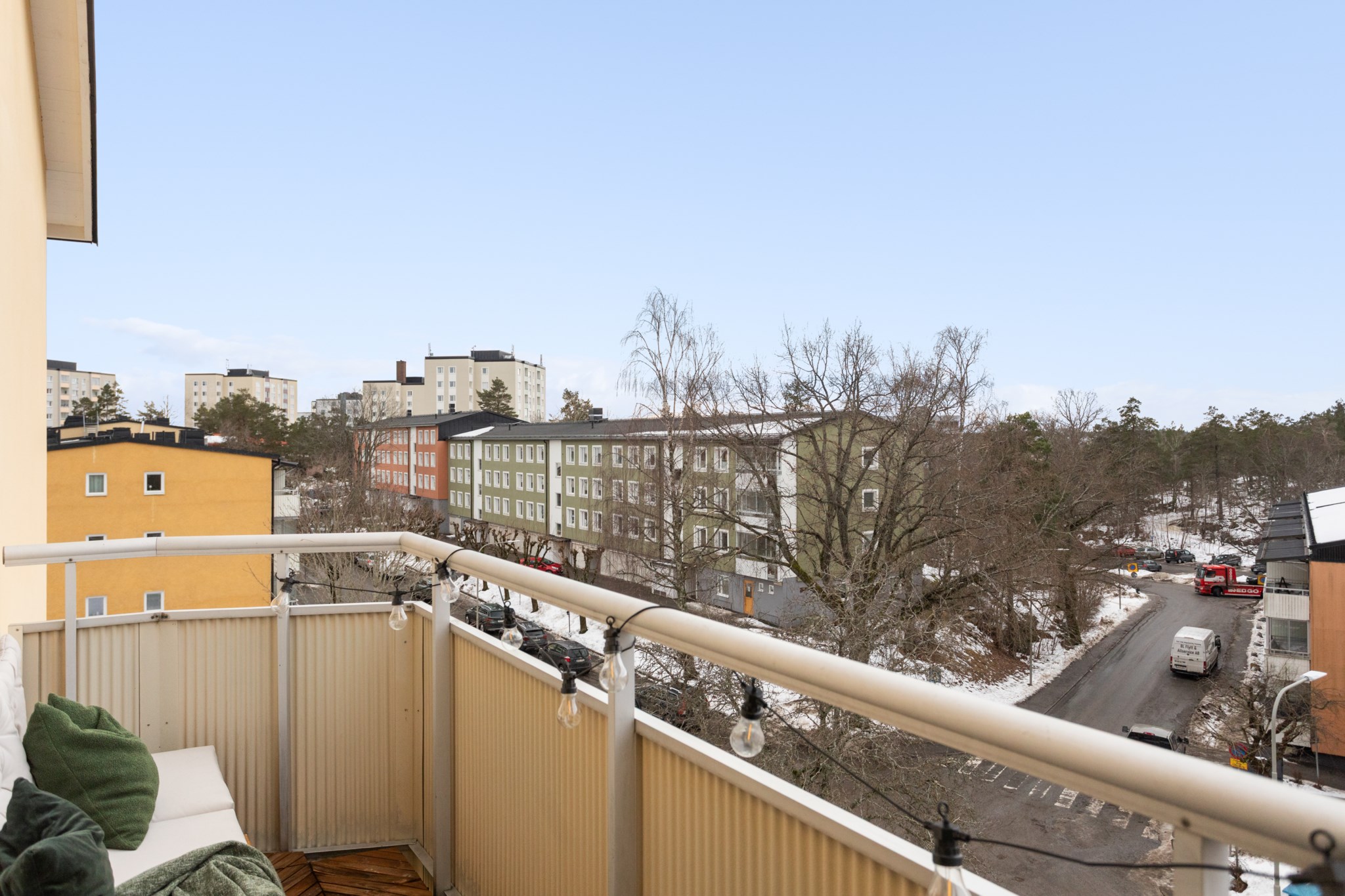 Solig och inbjudande balkong högst upp i huset!