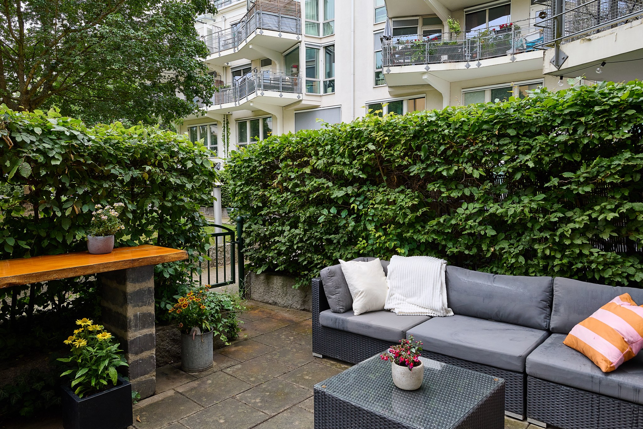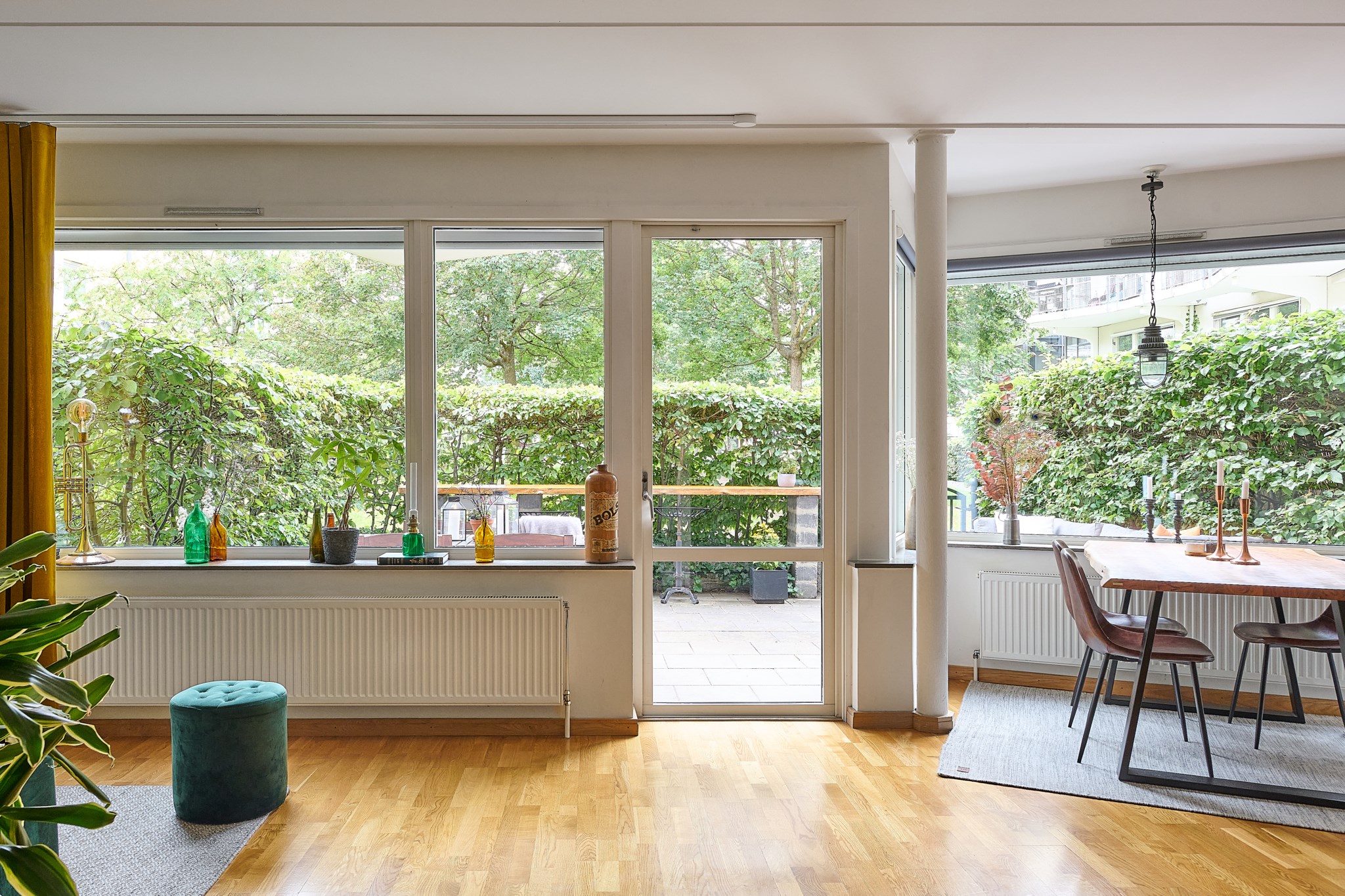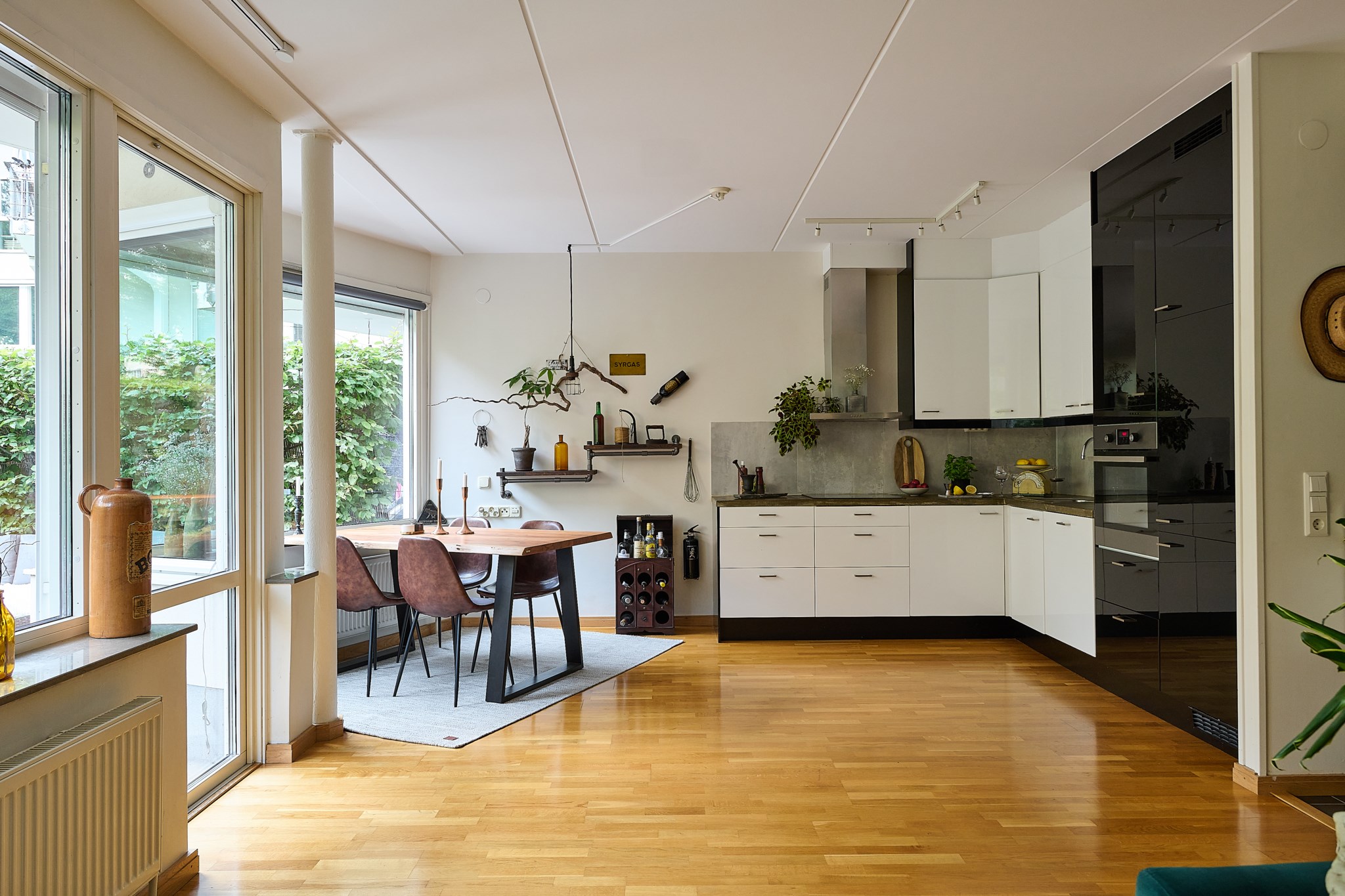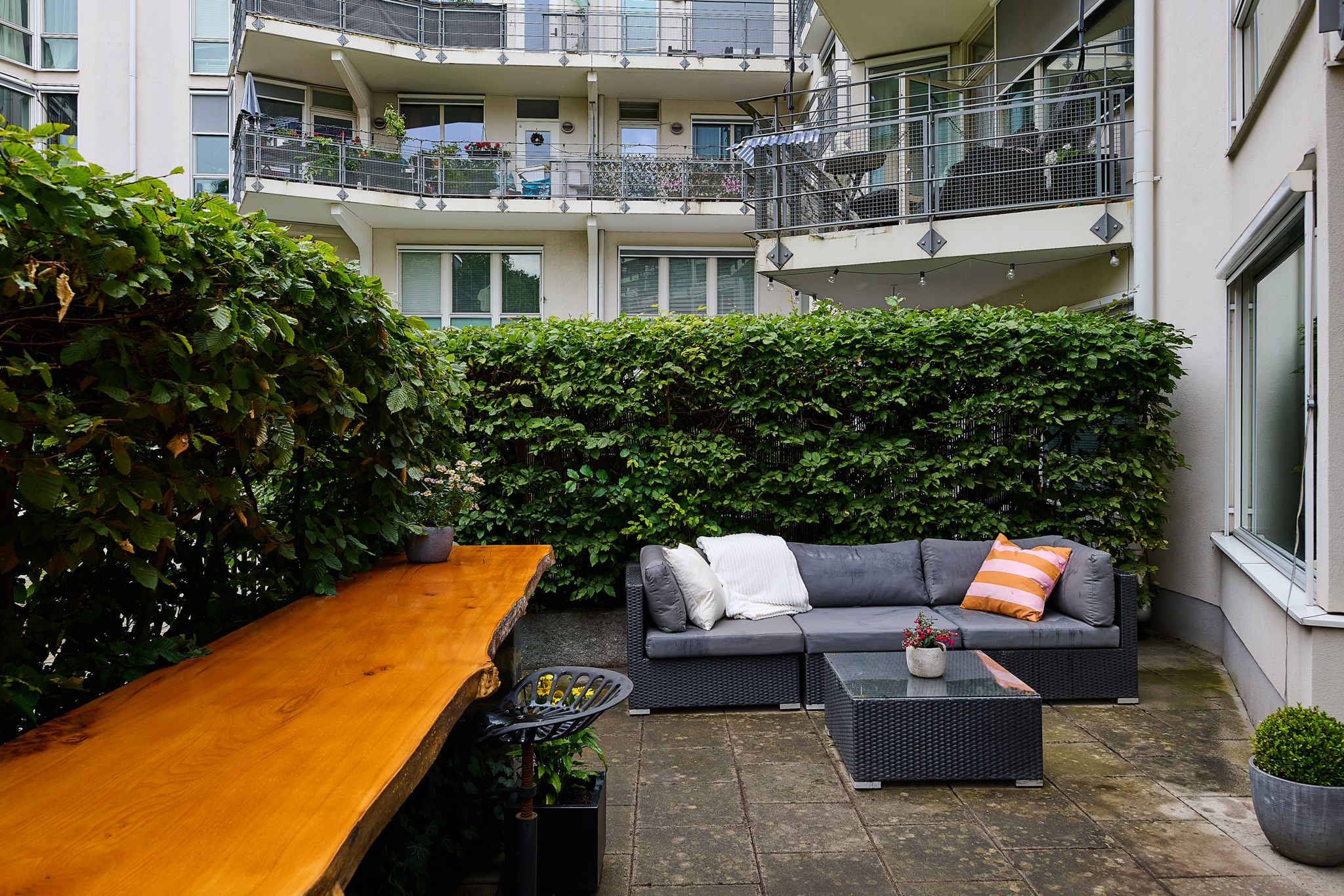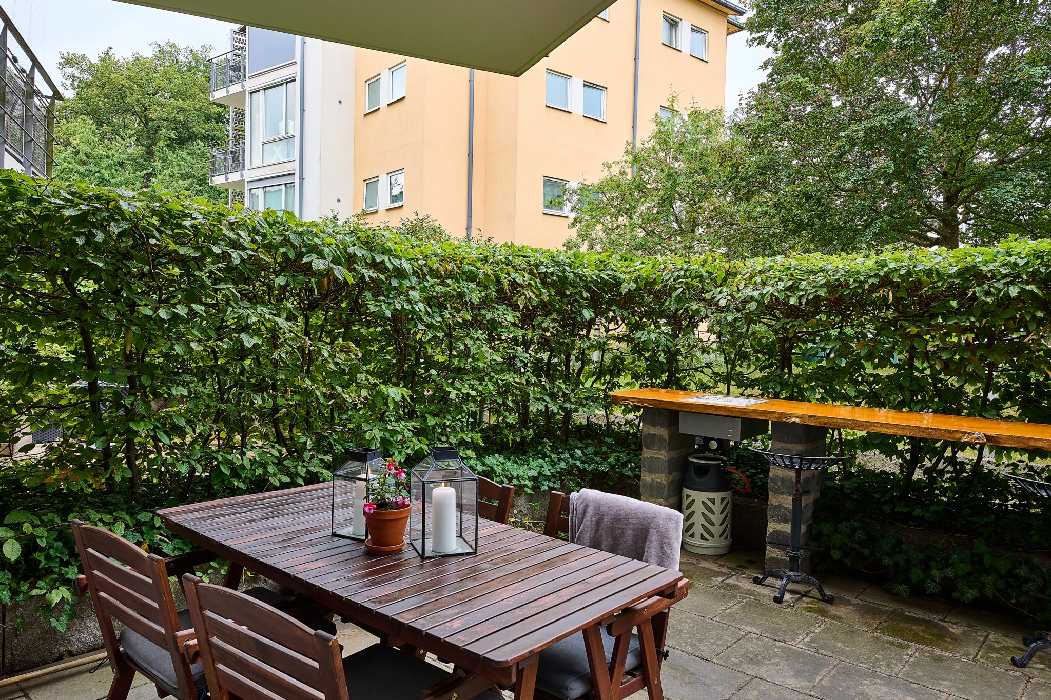 Välkommen till denna trivsamma bostad med stor uteplats i skyddat läge mot lummig innergård. Den stenbelagda uteplatsen sträcker sig längs med hela bostaden och ramas in av en grönskande häck. Stora fönsterpartier breder ut sig i kök och vardagsrum och ger ett fint ljusinsläpp. Rymliga sociala ytor med öppen planlösning mellan vardagsrum och kök med utgång till uteplatsen. Perfekt kombo för den som vill ha rymlig och privat uteplats men samtidigt bekvämligheten av att bo i lägenhet samt närheten till stadspuls.