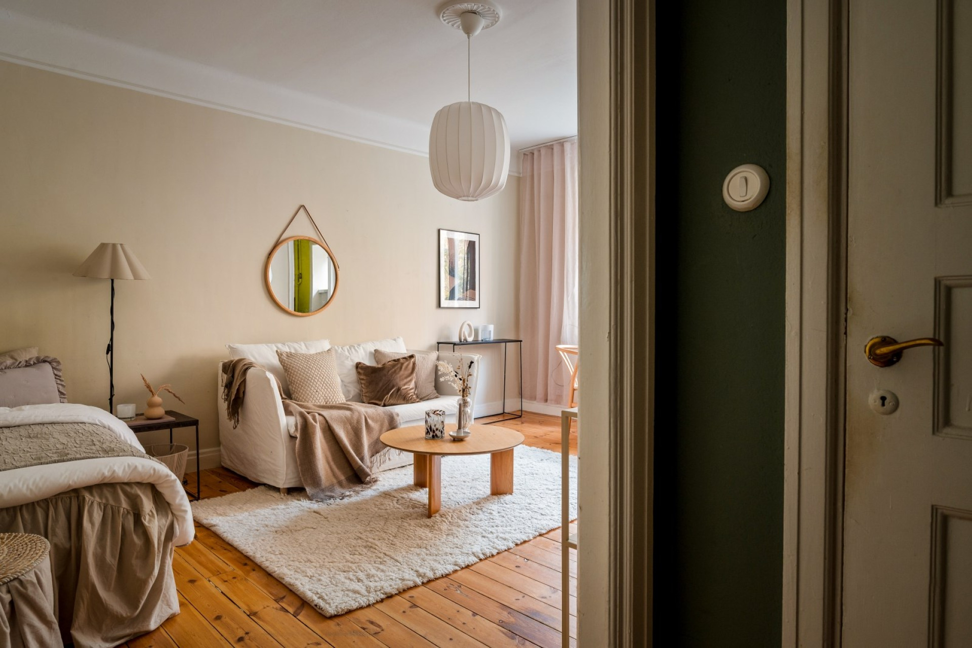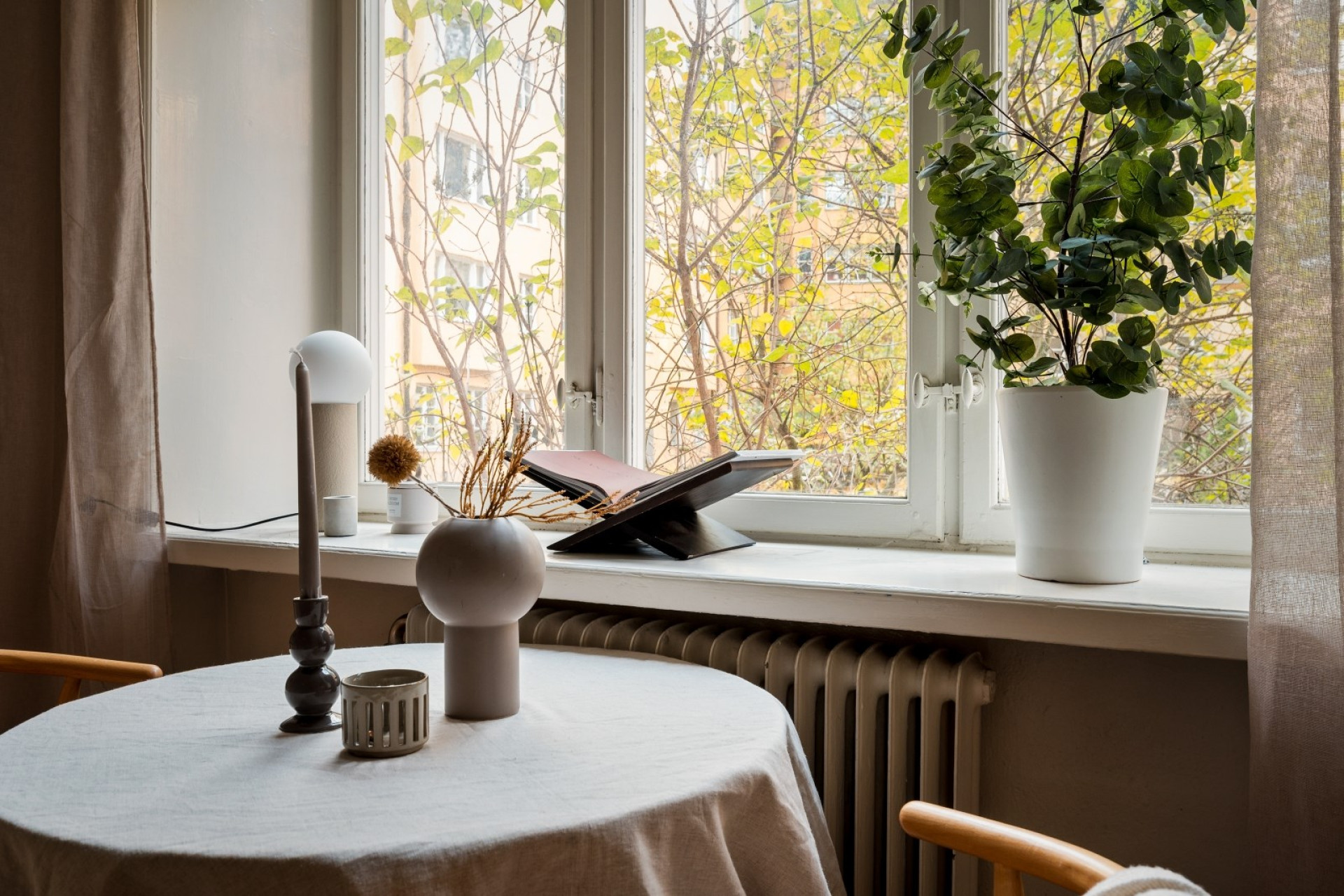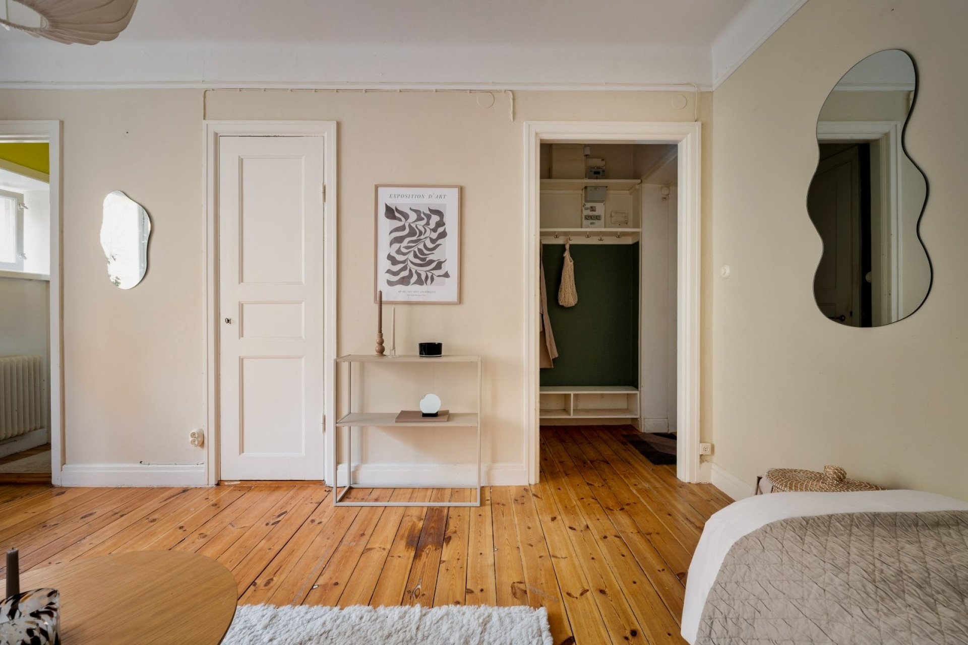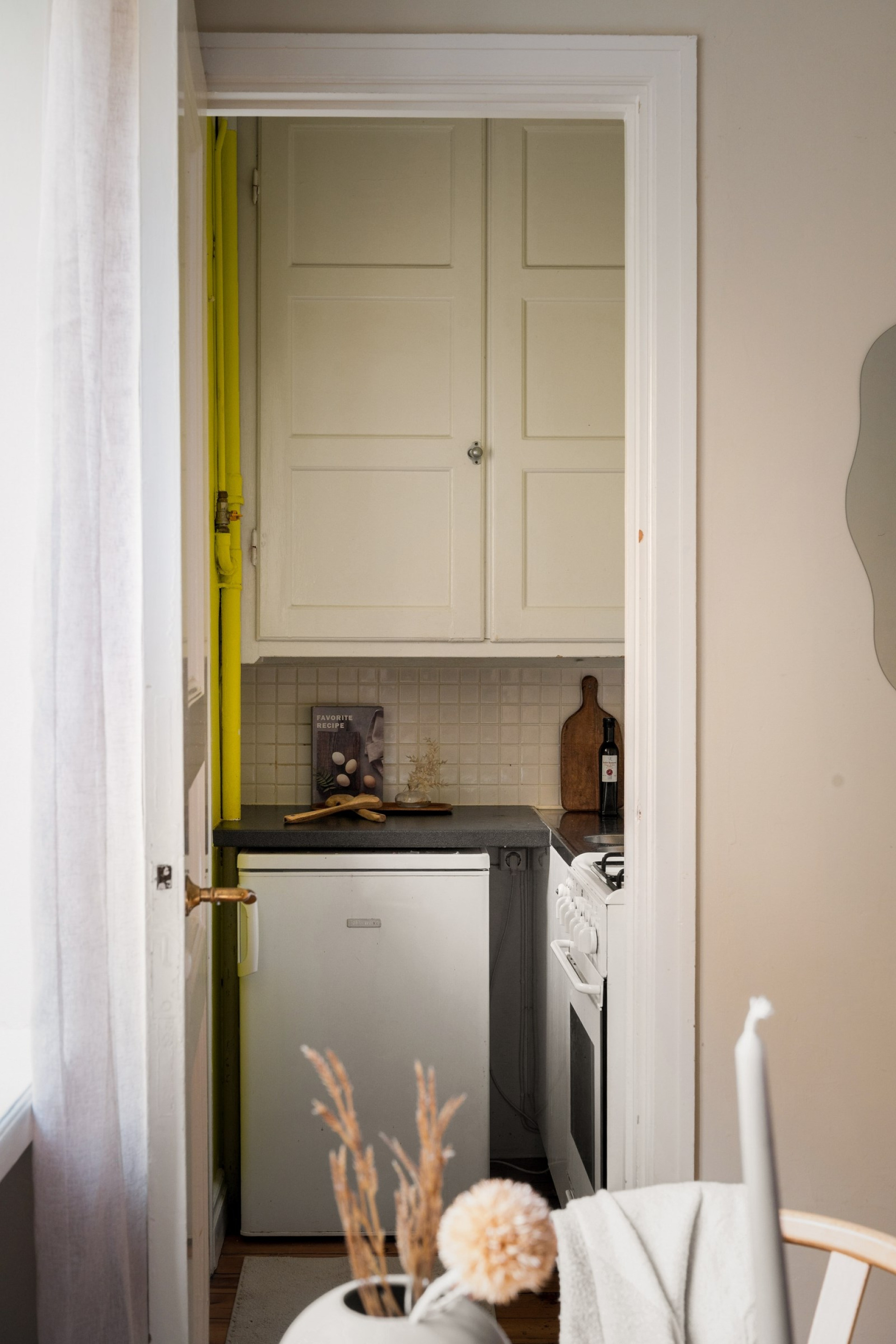 Välplanerad etta om 23 kvm med högt i tak, vackra originaldetaljer och ett fint ljusinsläpp