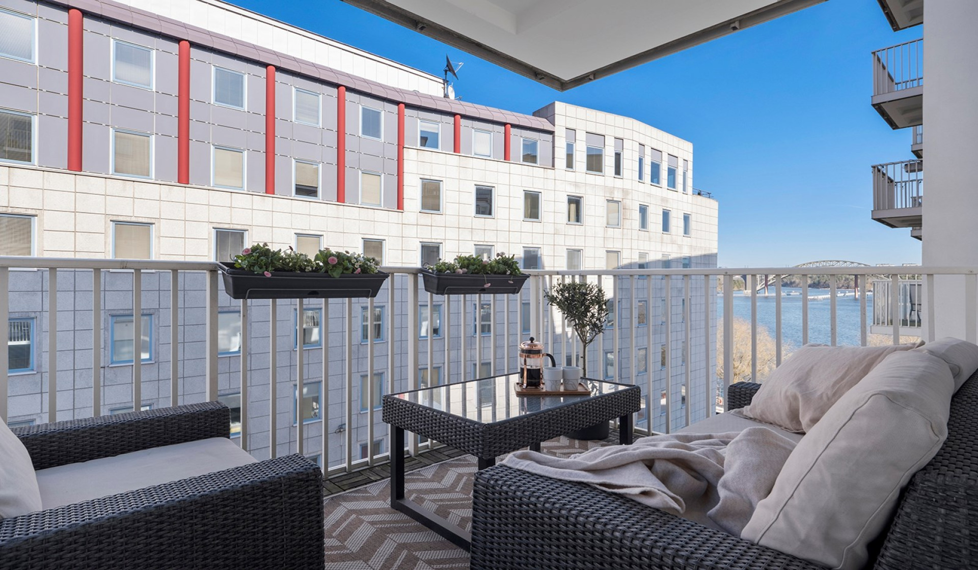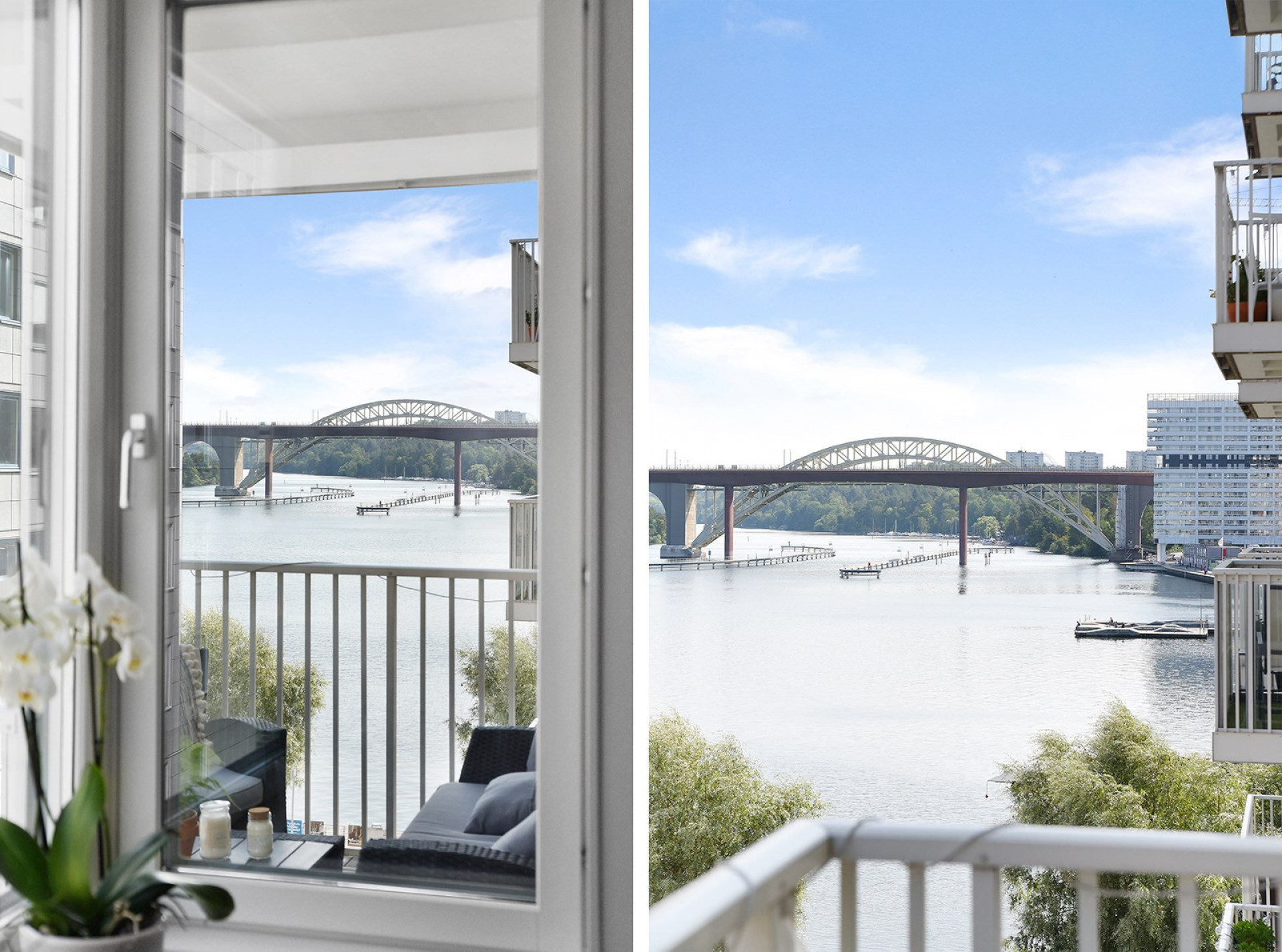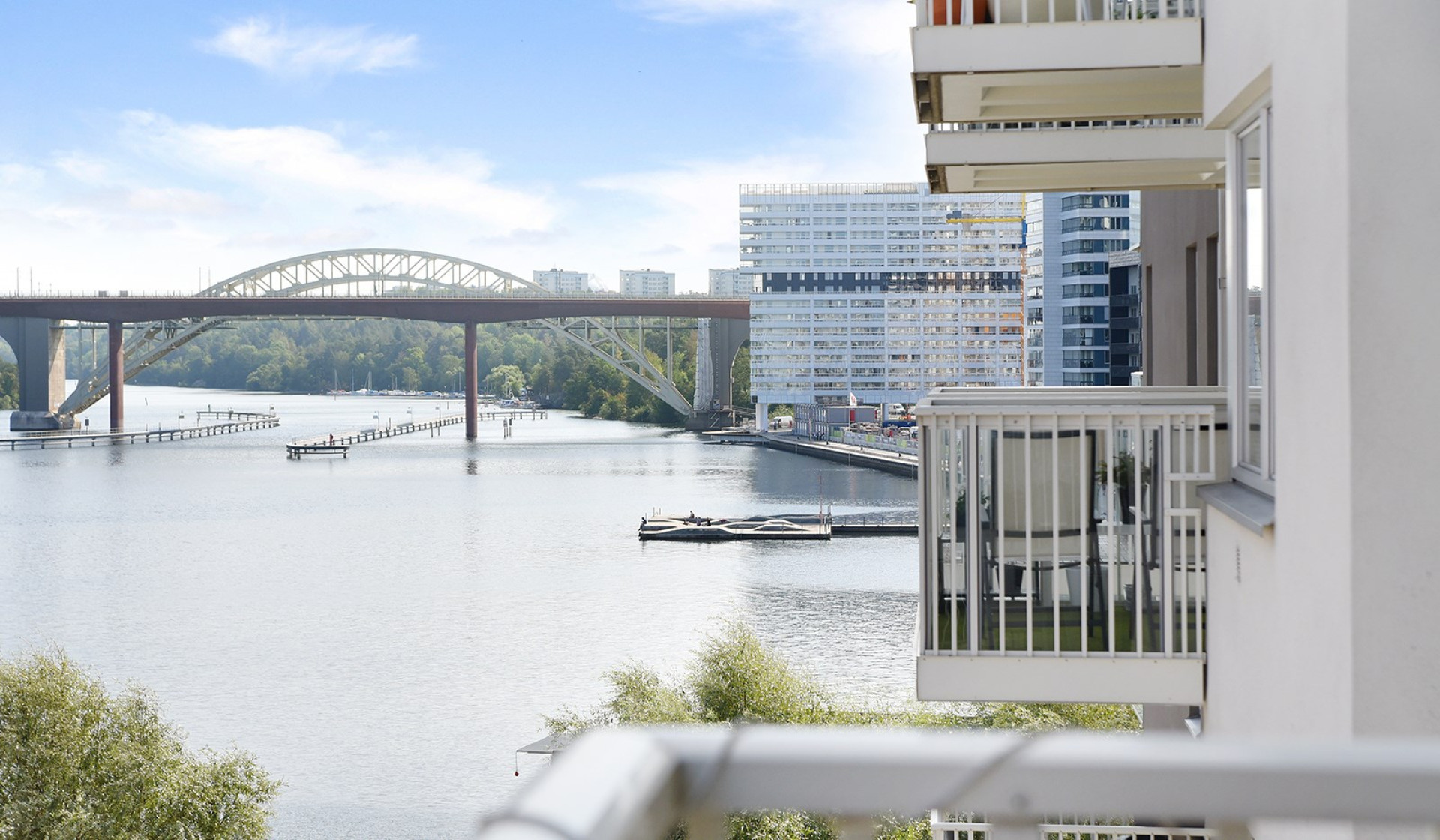 Ring för visning. Accepterat pris. Underbar lägenhet i Liljeholmskajen med dubbla balkonger och med utsikt över Mälaren.