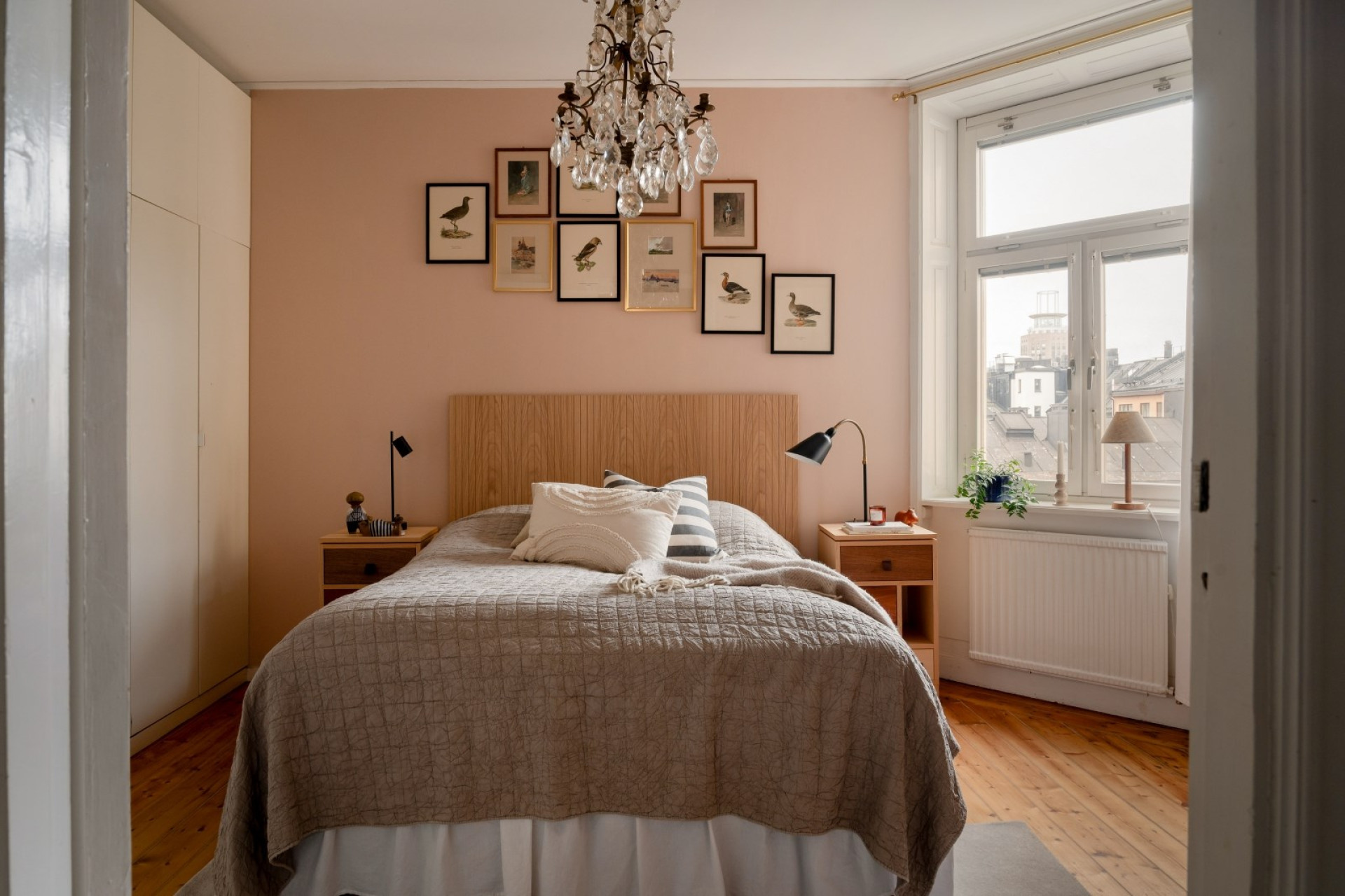 Fyra trappor upp i huset väntar ett elegant hem med vackra spegeldörrar, stora fönsterpartier och generös takhöjd, som tillsammans skapar en luftig och harmonisk känsla med ljusflöde från flera håll. De djupa fönsternischerna, höga golvsocklarna och det välbevarade brädgolvet ramar in bostaden och ger den både karaktär och själ. Här möts klassiska sekelskiftesdetaljer och moderna inslag i perfekt balans – ett hem som bjuder in till trivsel, lugn och vardagslyx.