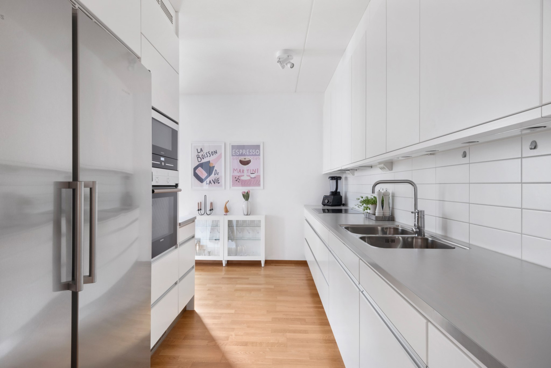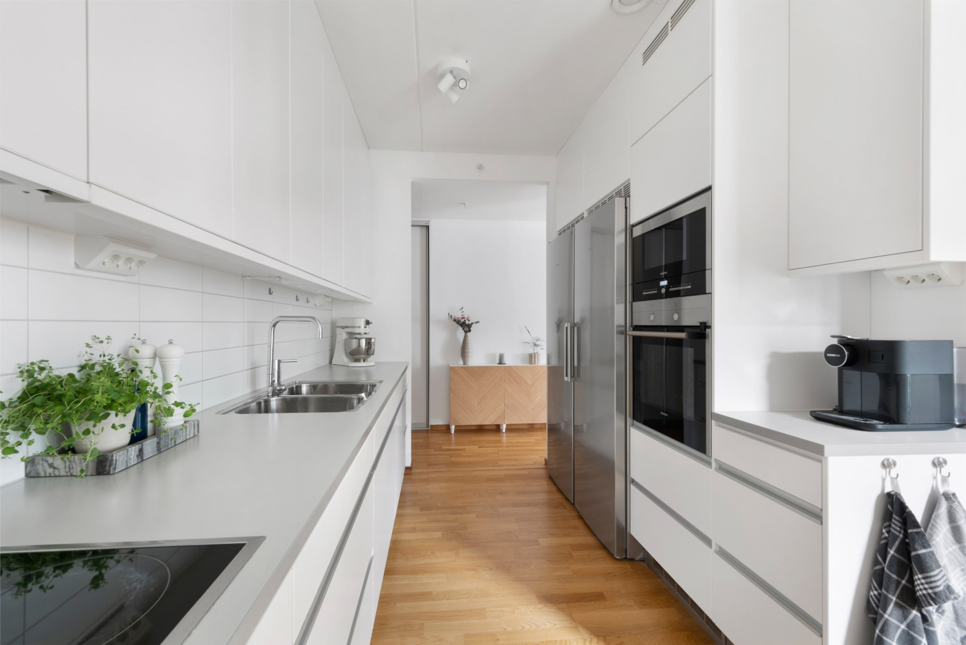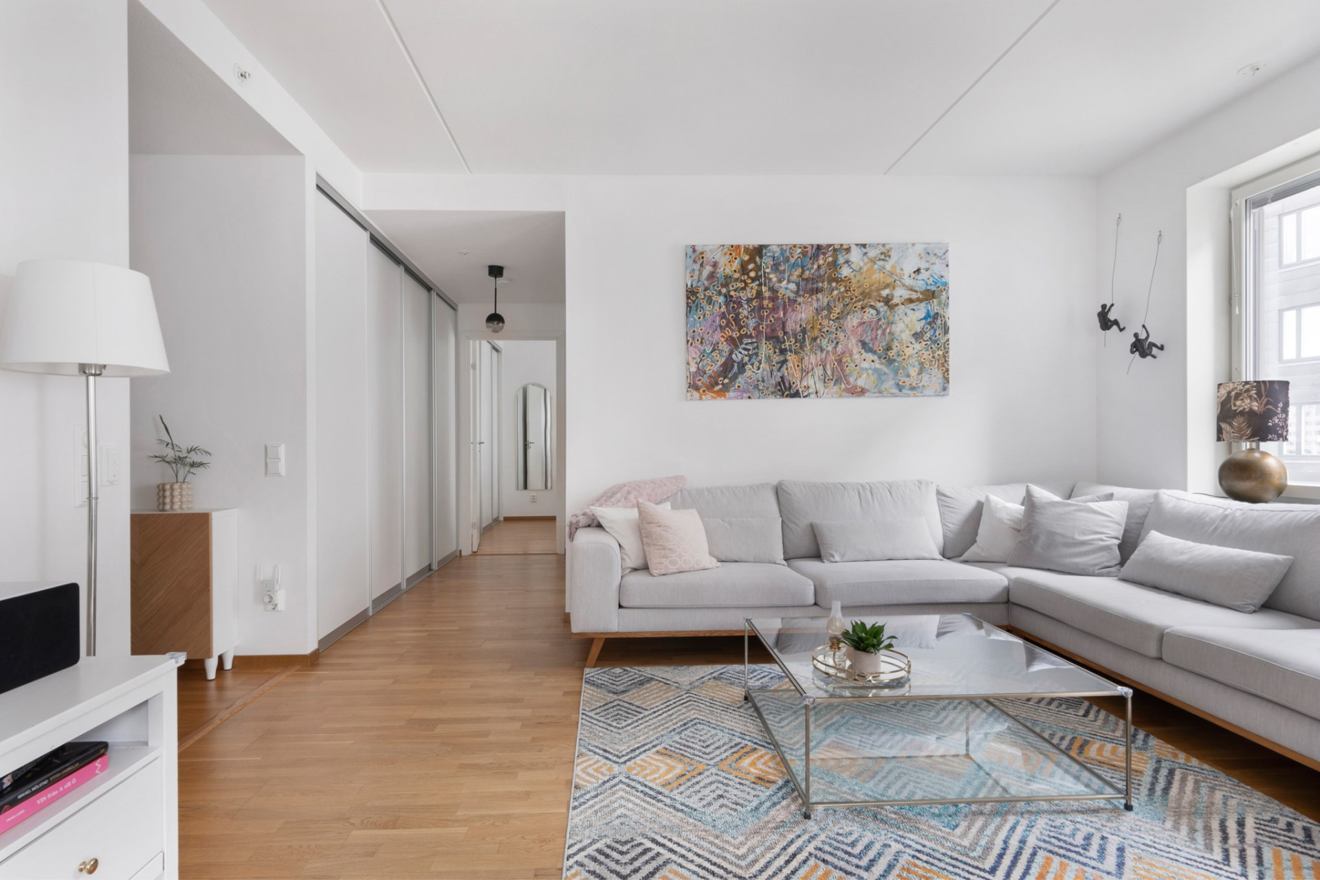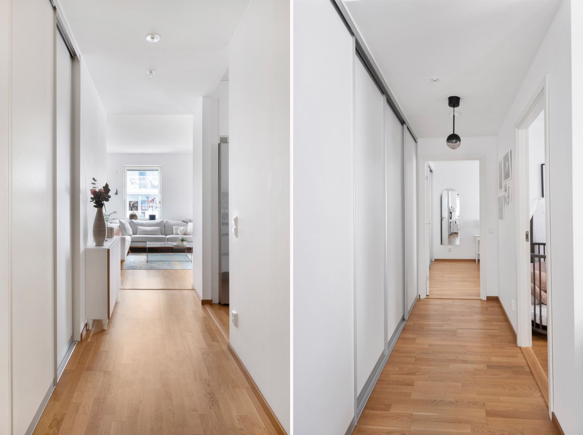 Lägenheten bjuder på en genomtänkt planlösning med generösa ytor och stora fönsterpartier som släpper in rikligt med ljus och skapar en luftig, inbjudande atmosfär. Den öppna planlösningen mellan kök och vardagsrum blir hemmets naturliga samlingsplats, perfekt för både vardagsliv och festliga middagar.