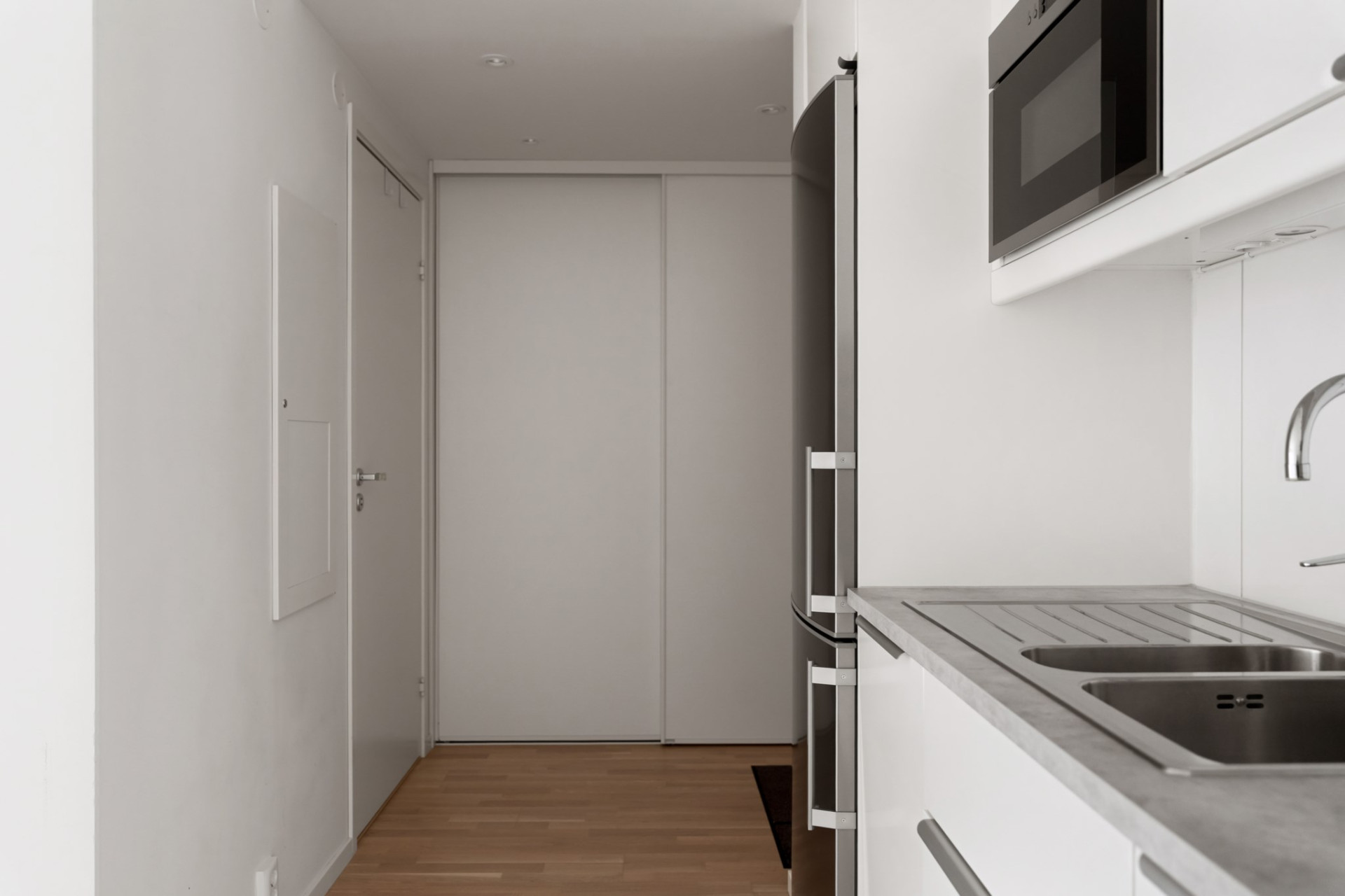 Varmt välkomna till denna extremt välplanerade etta med stor balkong mot den grönskande gården. Här nyttjas varje kvadratmeter på bästa sätt och planlösningen lyckas skapa rum i rummet och på ett naturligt sätt skapa avskildhet mellan kök, vardagsrum och sovrum. Balkongen blir en trevlig förlängning av bostaden och ger möjlighet att koppla av i solen i väster under eftermiddag och kväll. Huset byggdes 2021 och bostaden är i mycket fint skick med ljusa naturliga färgval och moderna materialval. Det vackert ljusa parkettgolvet är genomgående i hela bostaden och bidrar till ett rymligt och ljust intryck.