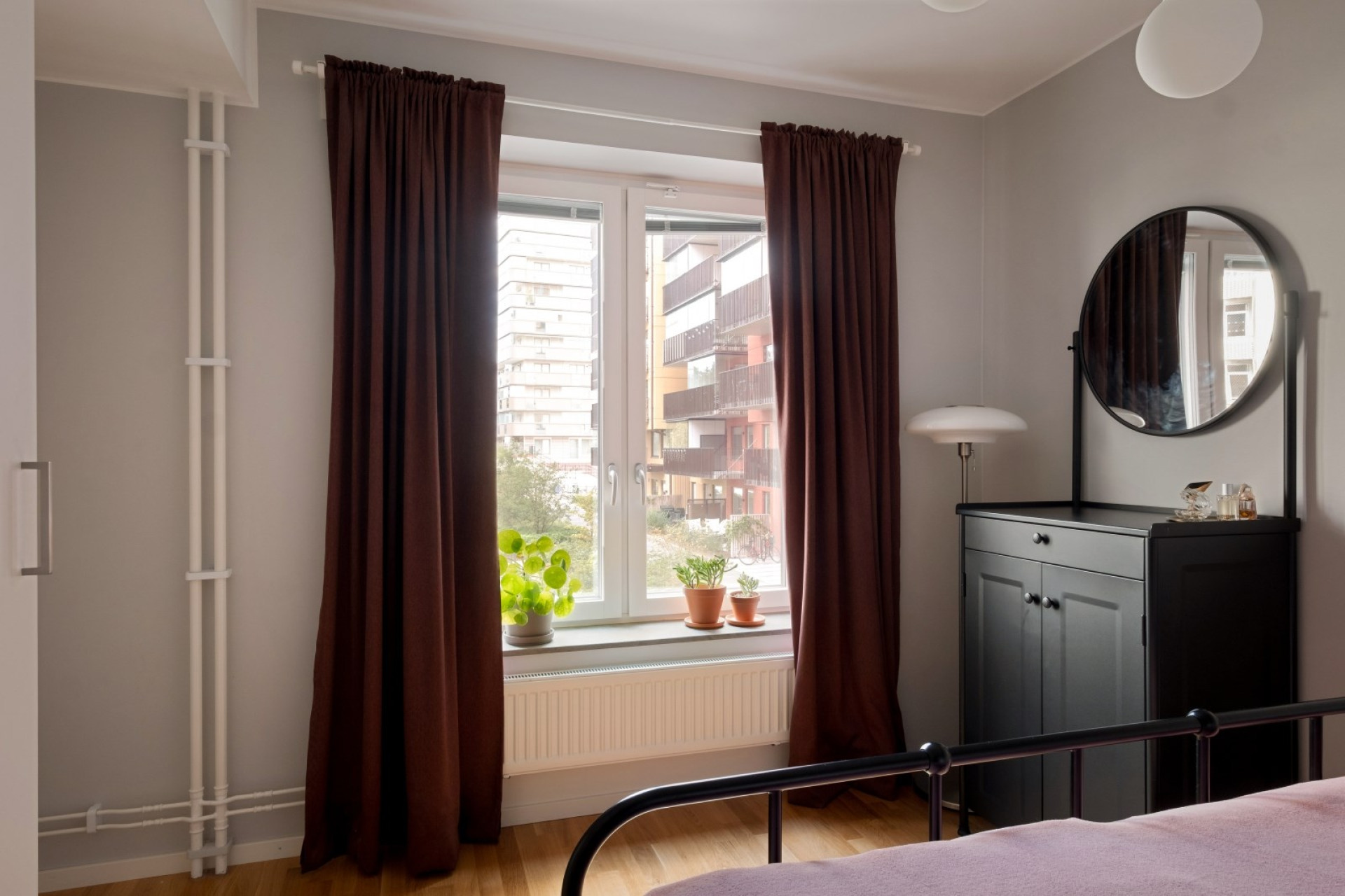 Mysigt sovrum med plats för 180 säng samt garderob. Fönster även här mot föreningens gård där du kan sova ostört.