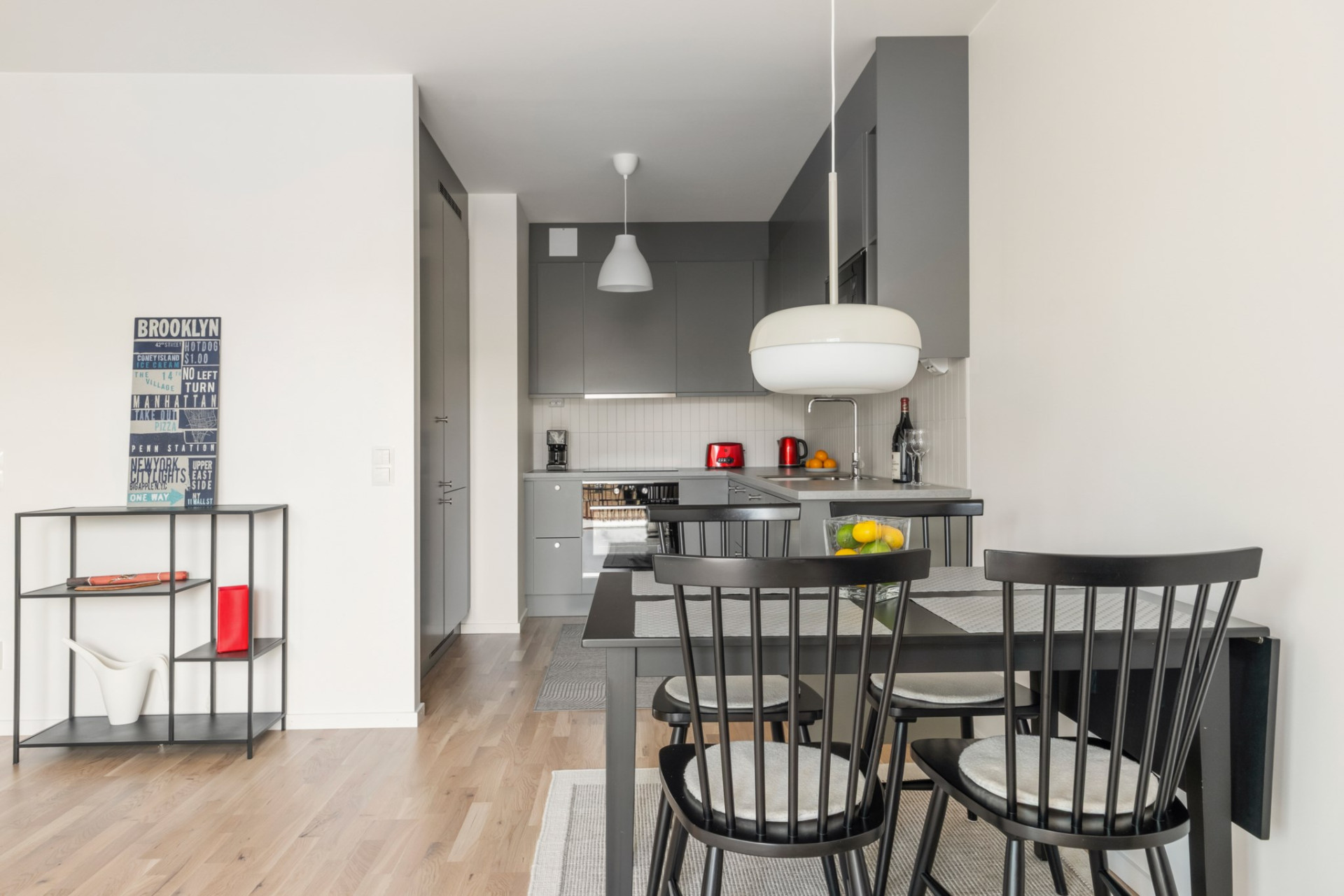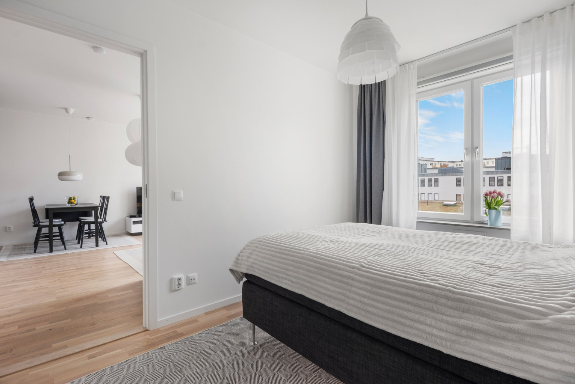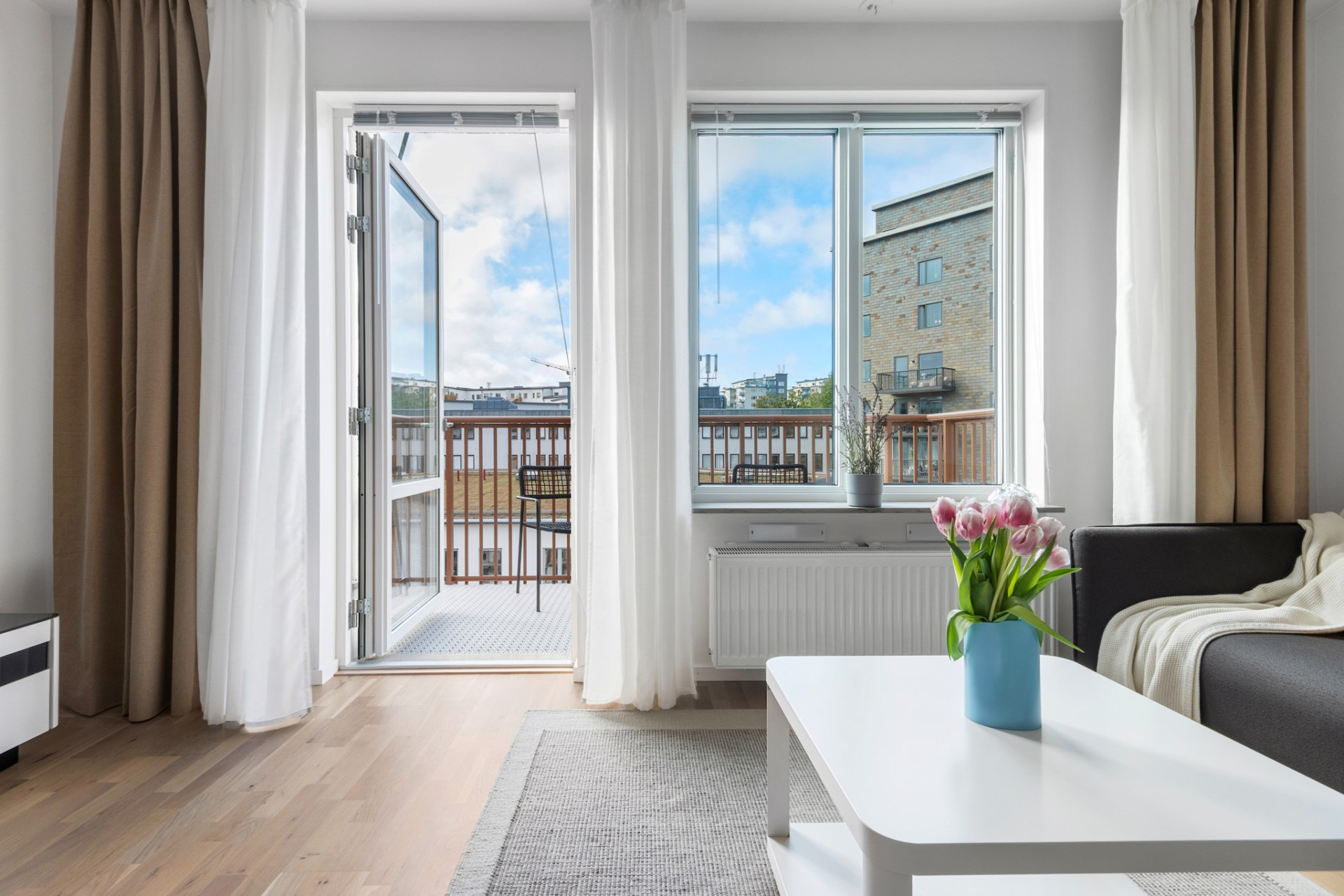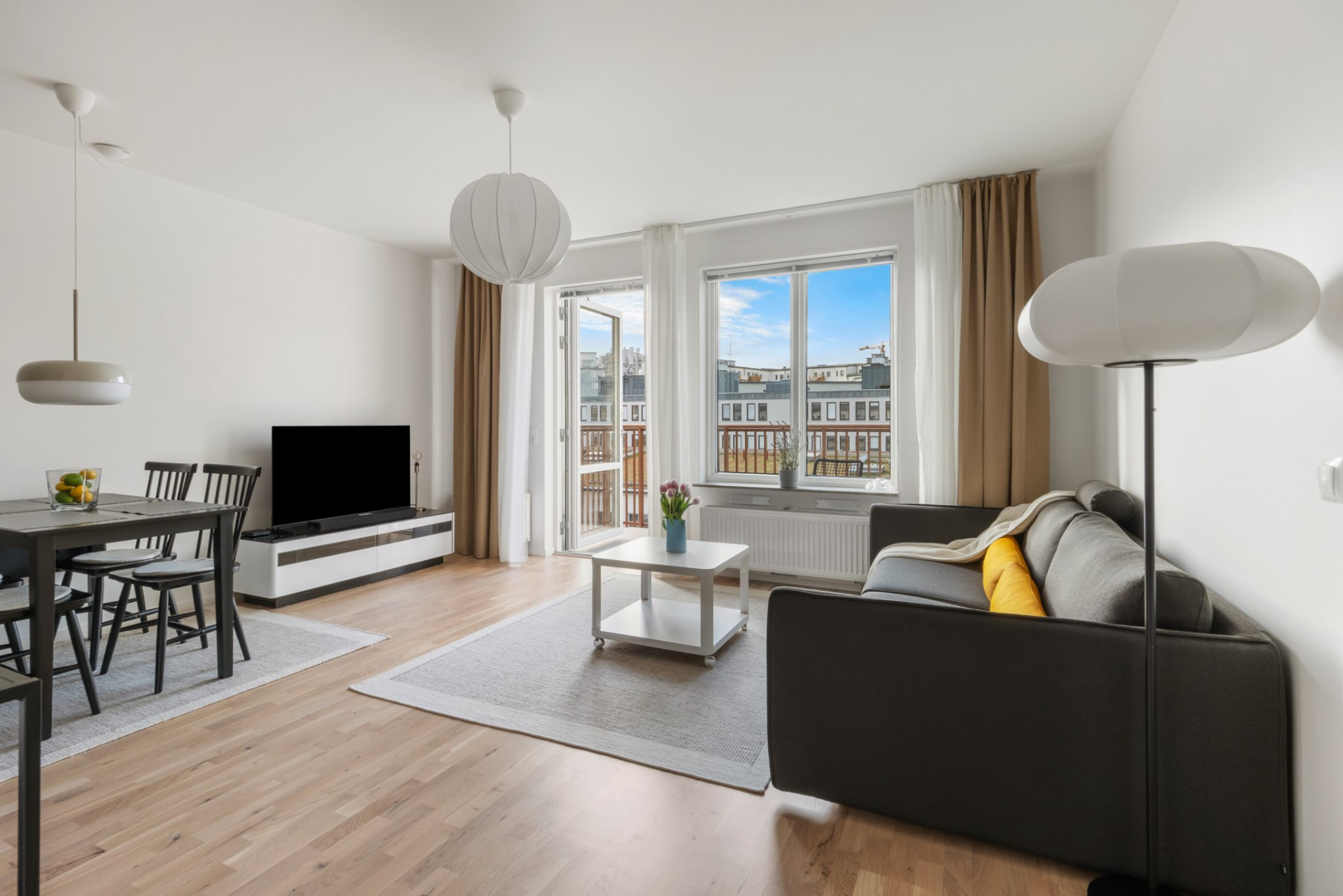 Accepterat pris! Högst upp i fastighet från 2024! Nyskick, ogenerat läge, balkong i söder & fri vy över takåsar. Nära tvärbana, pendeltåg och skog.