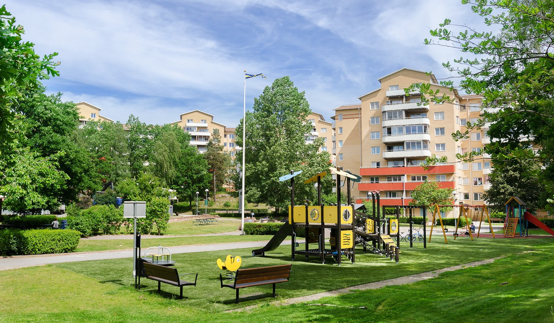 Optimalt planerad lägenhet på hela 109 kvm med stor uteplats i sydost läge där många sköna dagar kan avnjutas i solen under årets varmare dagar. Lägenheten har ett bra strategiskt läge med närhet till stora köpcentra såsom Ica Maxi, Bauhaus, Biltema samt nära till Hallunda centrum, T-bana och bussar.