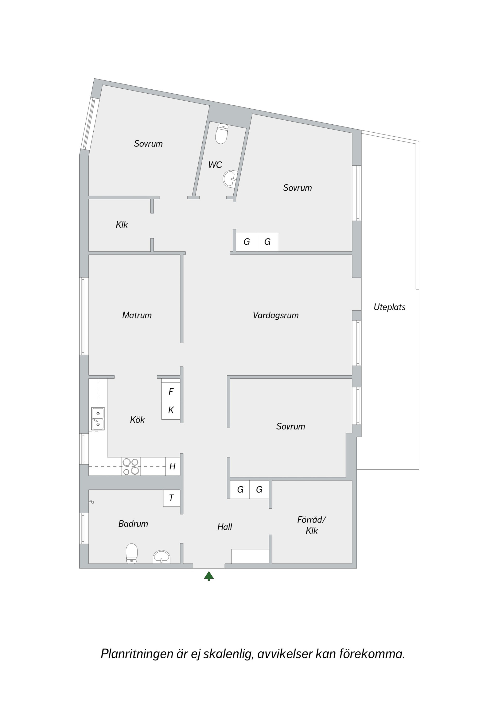 Lägenheten disponeras på följande sätt: