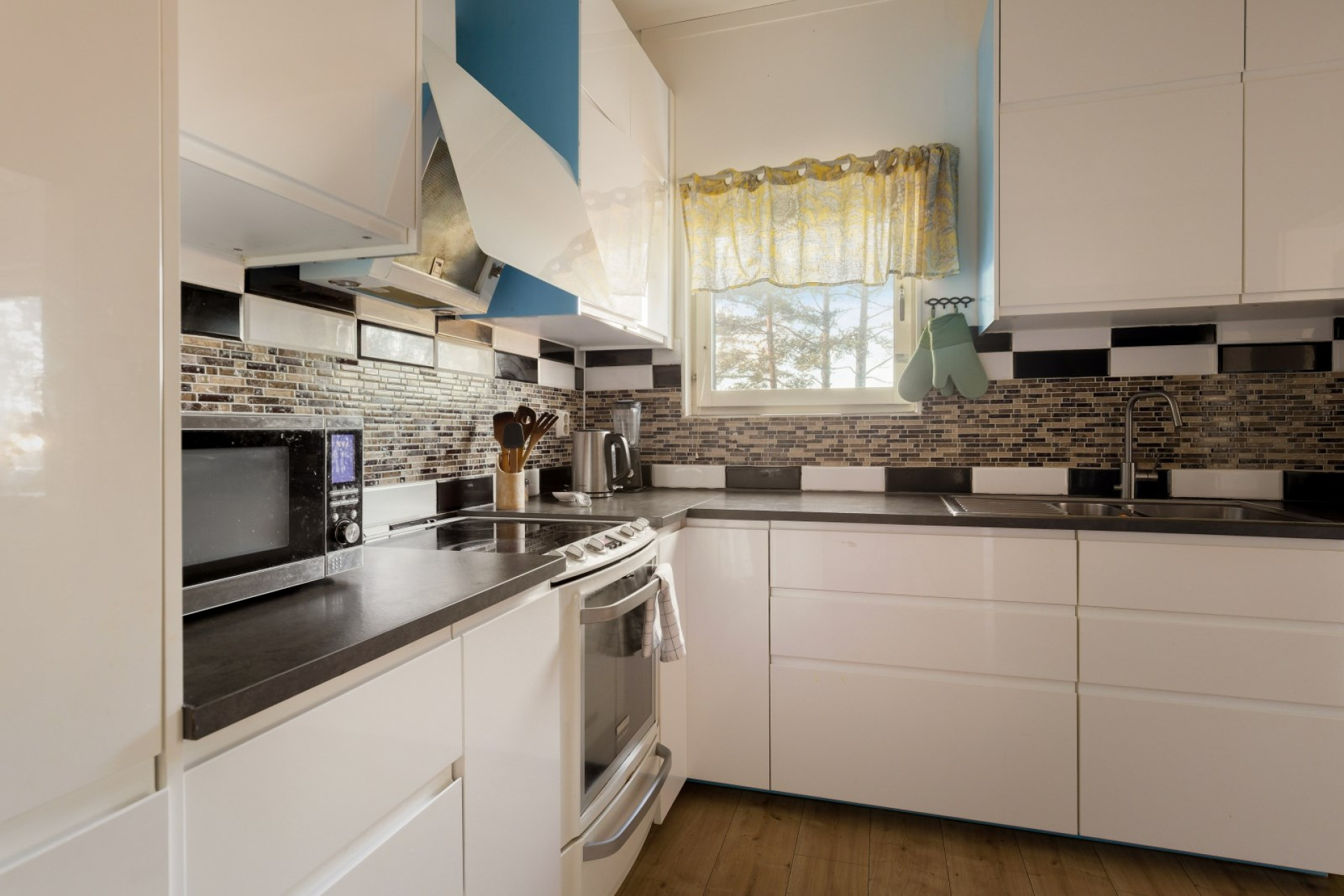 Renoverat kök från 2023 med matplats Här erbjuds gott om förvaring i flera skåp och bra arbetsytor. Den maskinella utrustningen består av spis, fläkt samt kyl och frys i fullhöjd. Här finns fönster som släpper in härligt ljus.