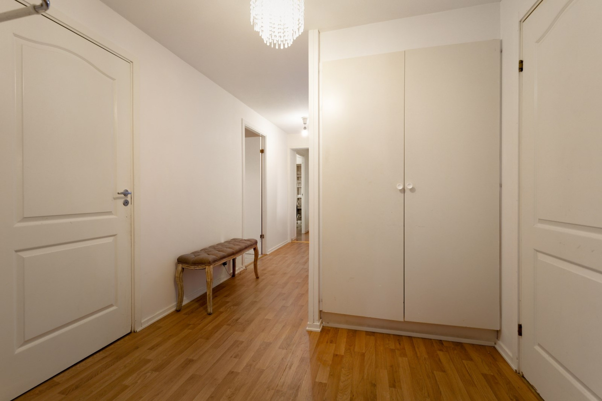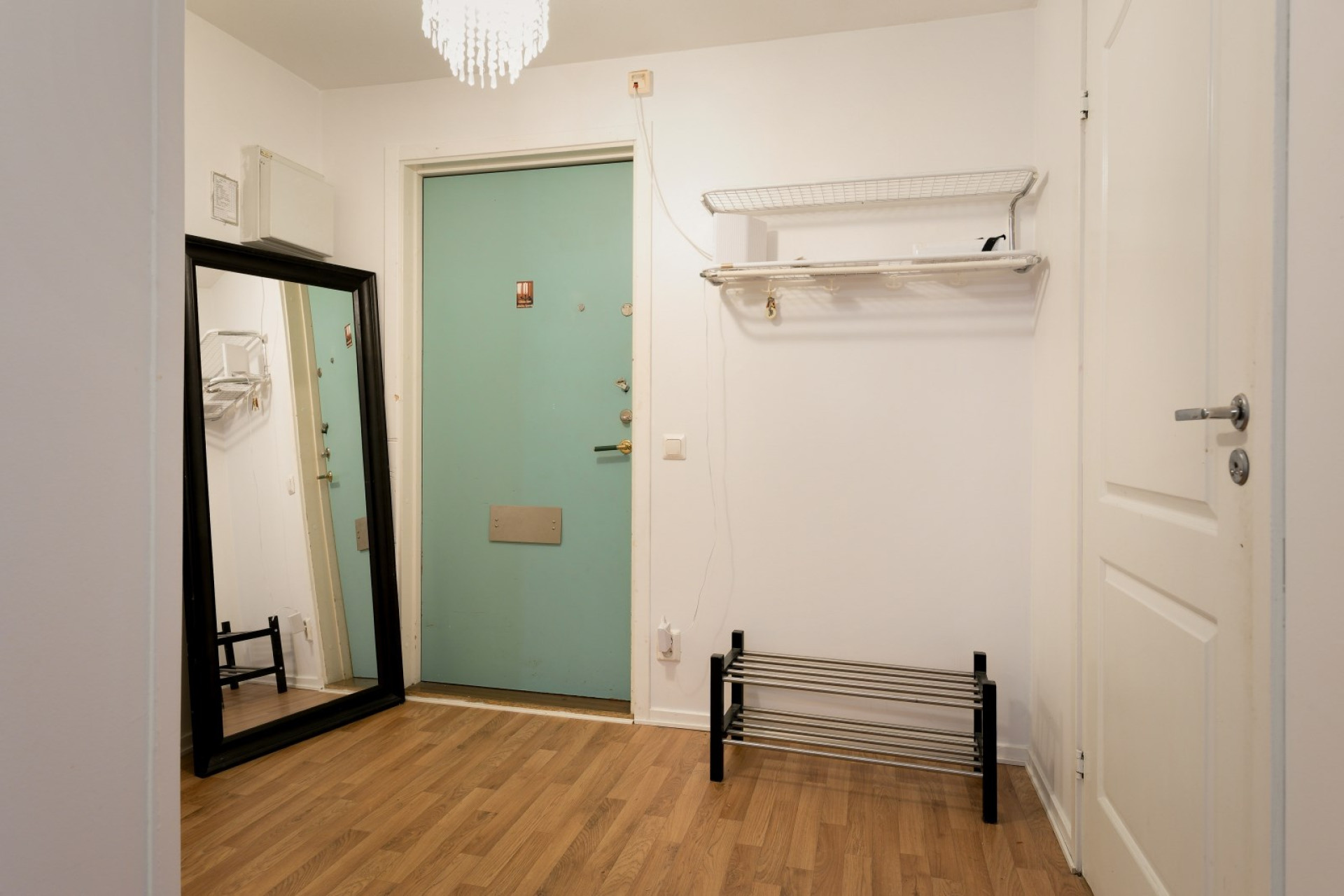 Inre hall med anslutning till wc:n och klädkammaren.
