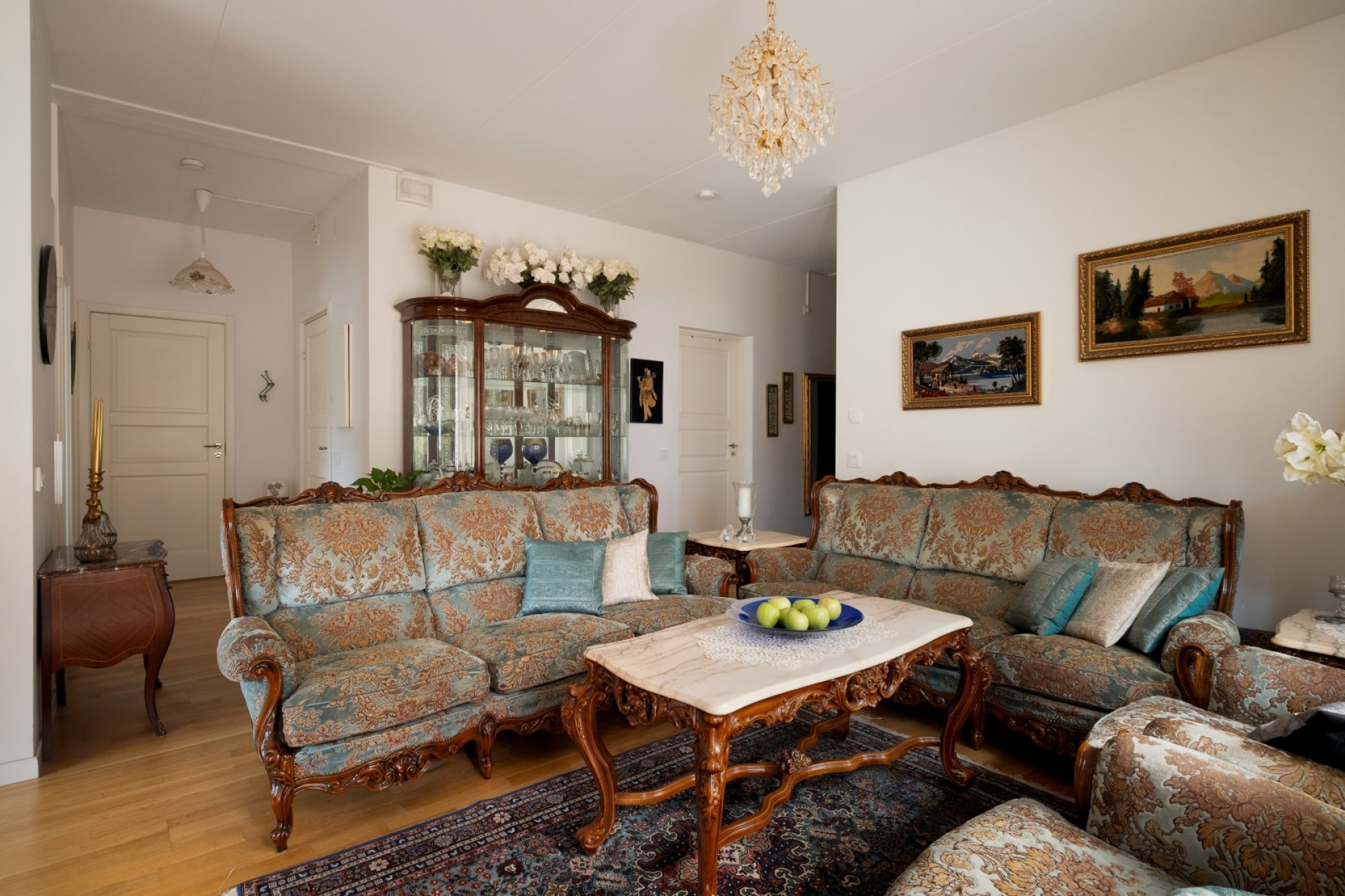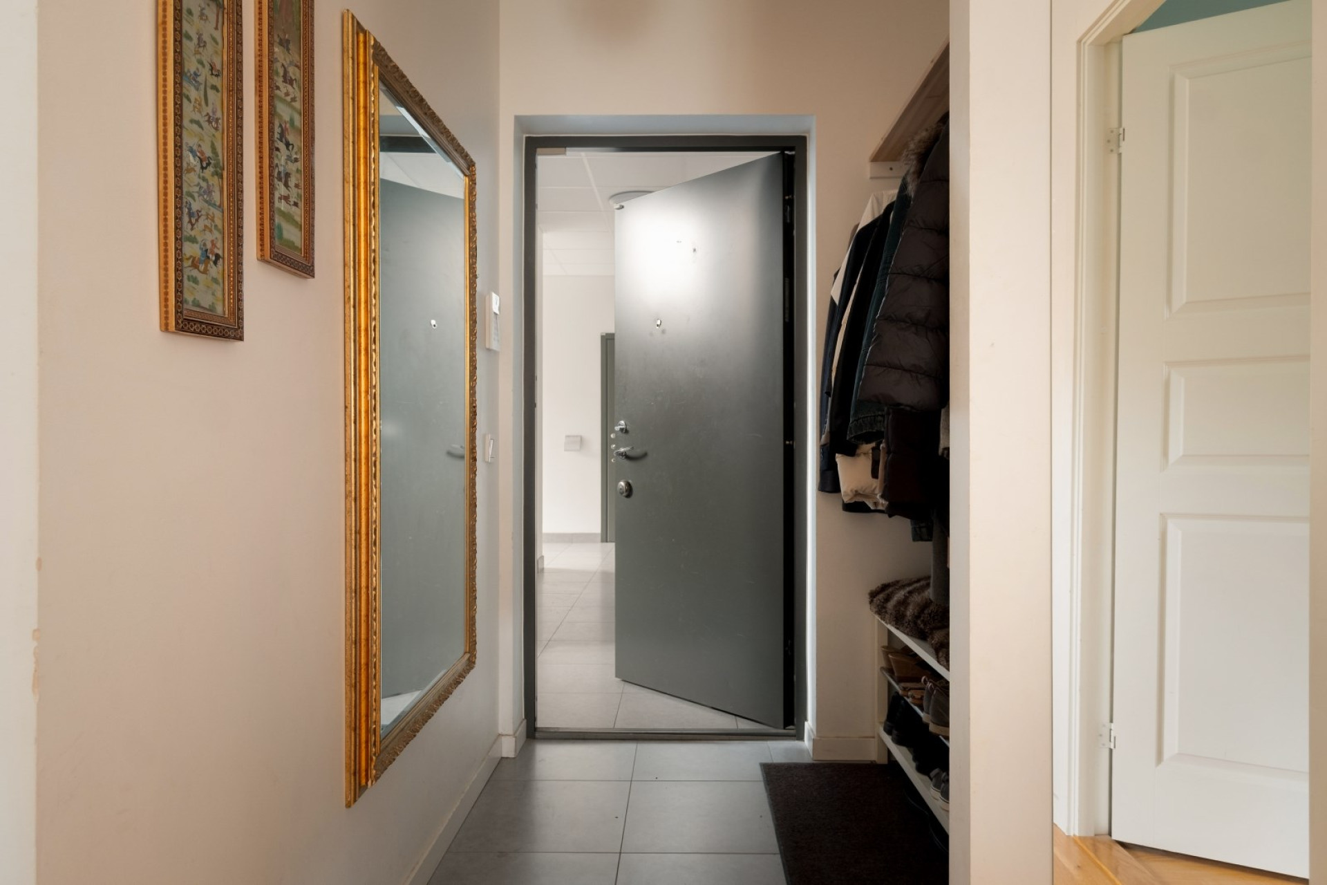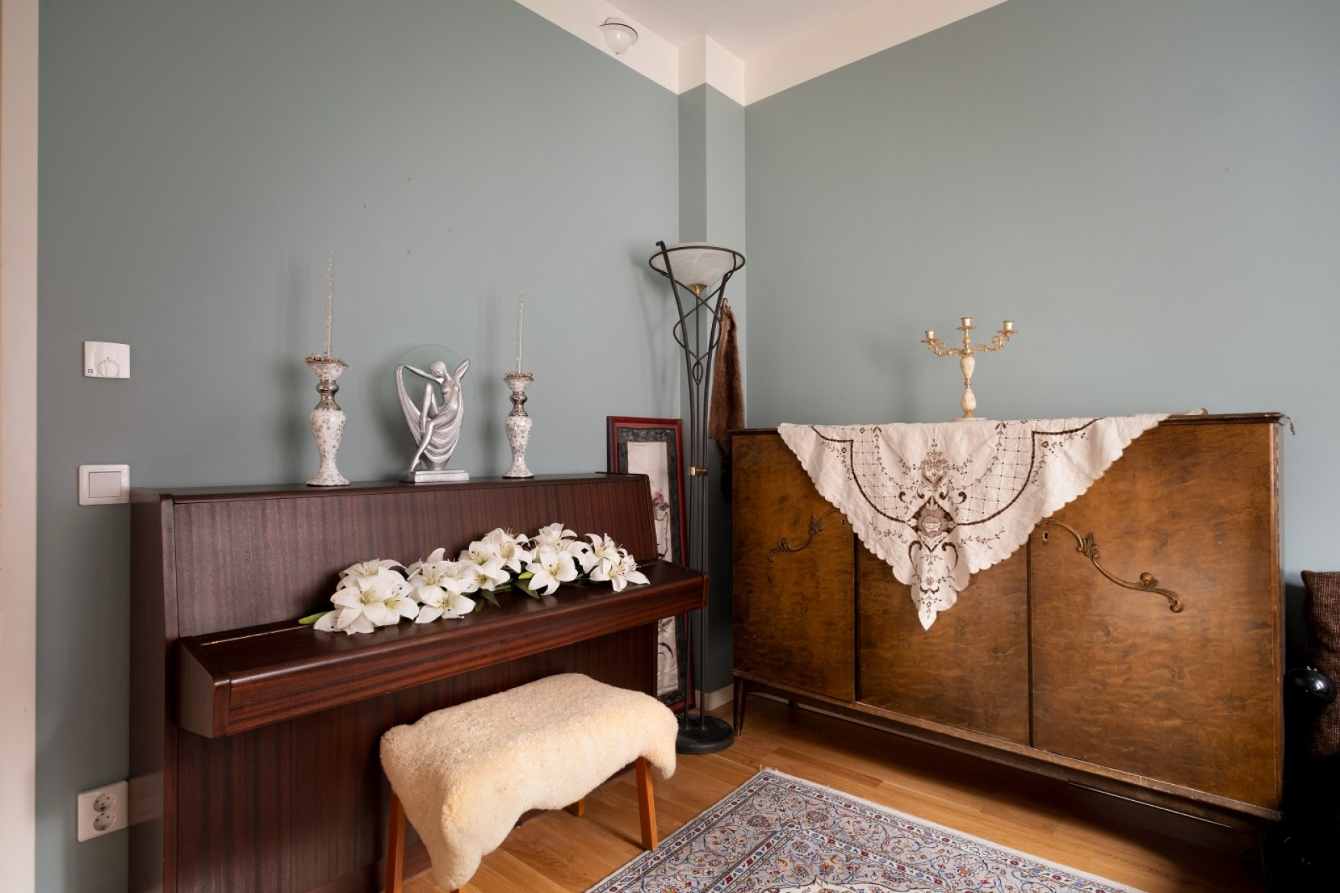 Till lägenheten hör dessutom ett generöst förråd som ligger på källarplan och nås smidigt via hissen och har full takhöjd. Här finns plats för säsongskläder, resväskor, vinterdäcken och golfbagen mm.