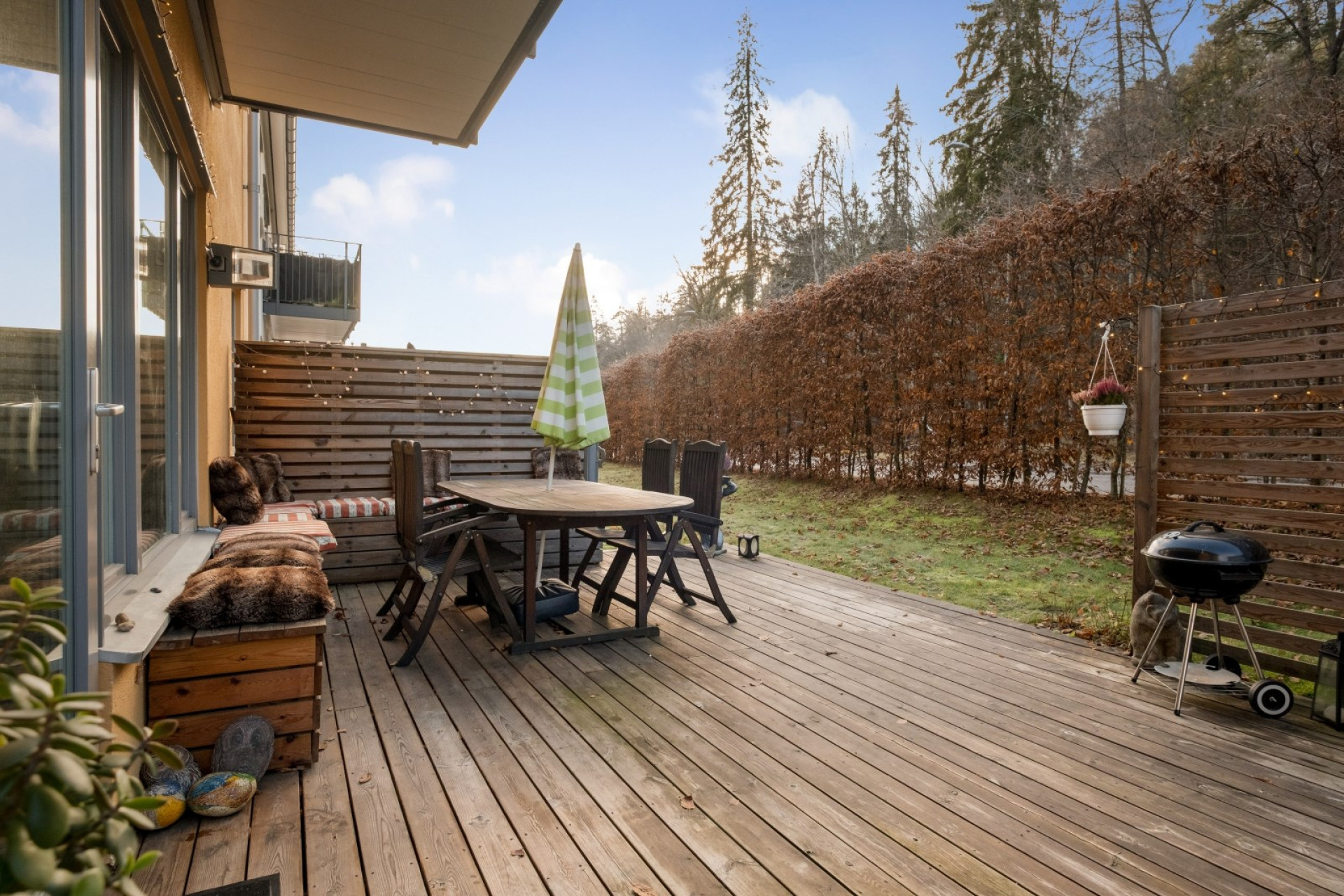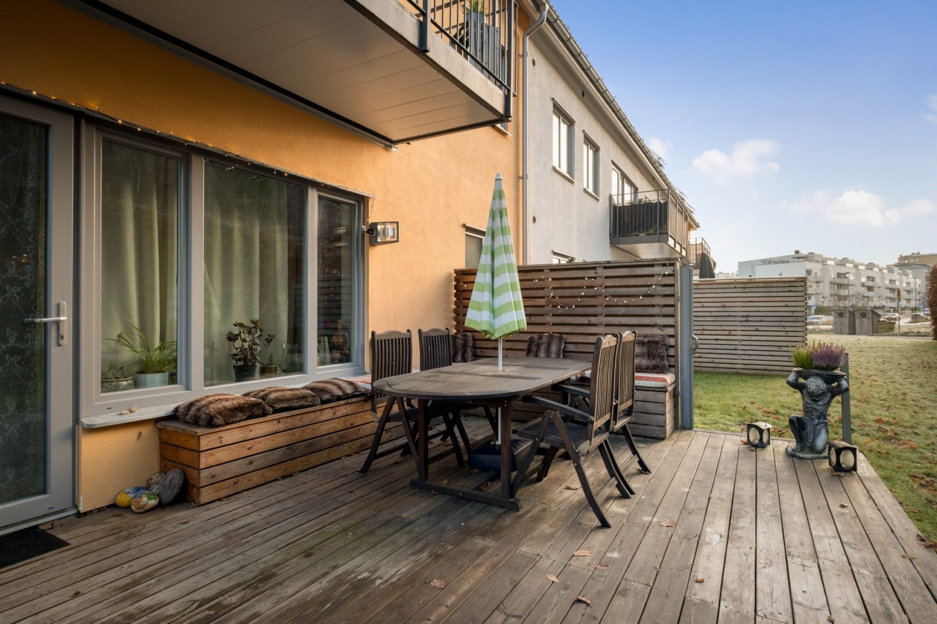 En av bostadens absoluta pärlor är den stora uteplatsen i privat hörnläge – en oas med bästa tänkbara solläge där du kan njuta av morgonkaffet, avkopplande eftermiddagar eller sommarens långa middagar i kvällssolen. Här får du det lilla extra som gör vardagen både enklare och mer njutbar.