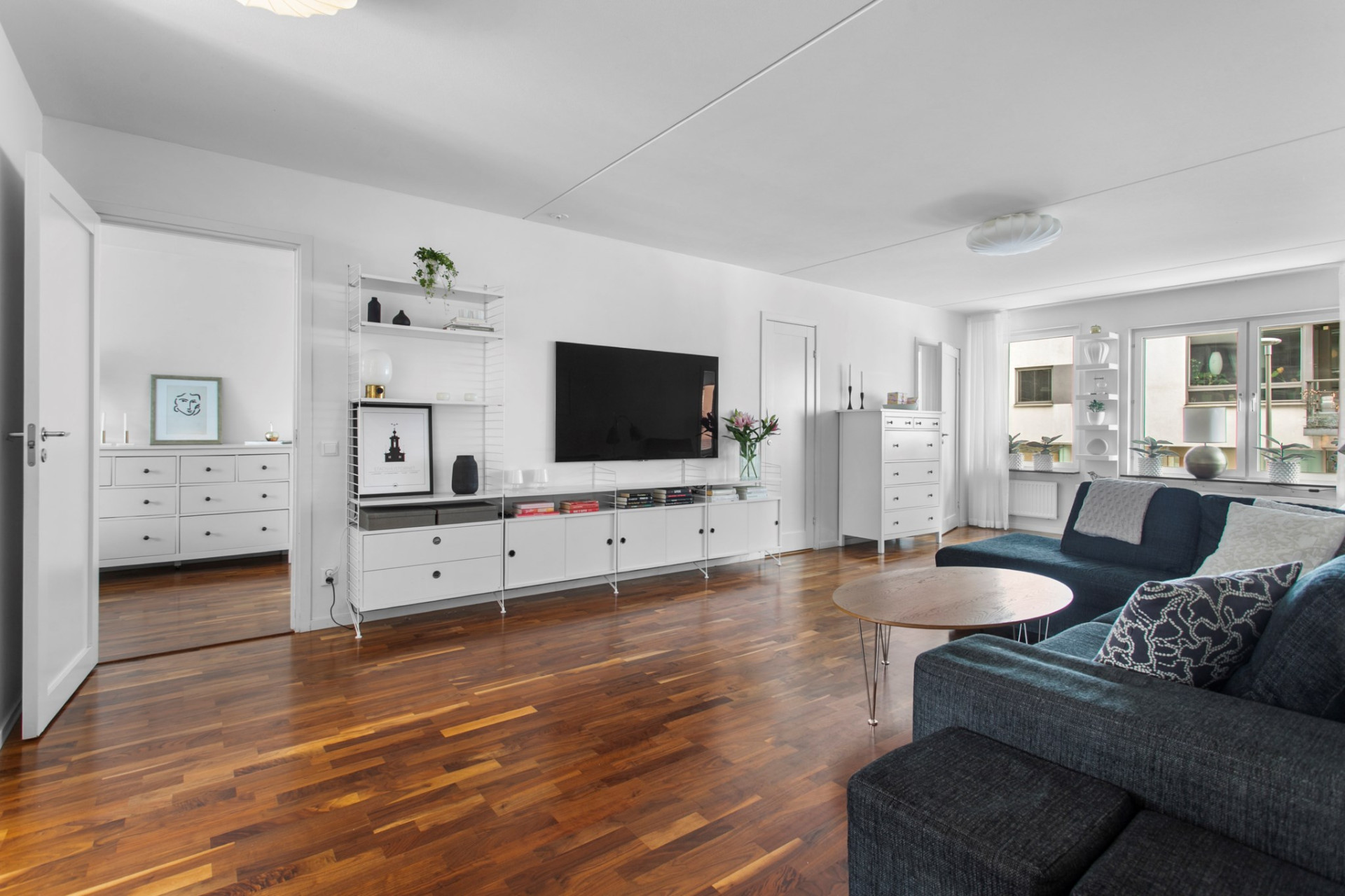 En harmonisk och genomgående smakfull bostad med två eleganta badrum, ett stort vardagsrum och fyra välplanerade sovrum, allt i påkostade material och sobra kulörer.