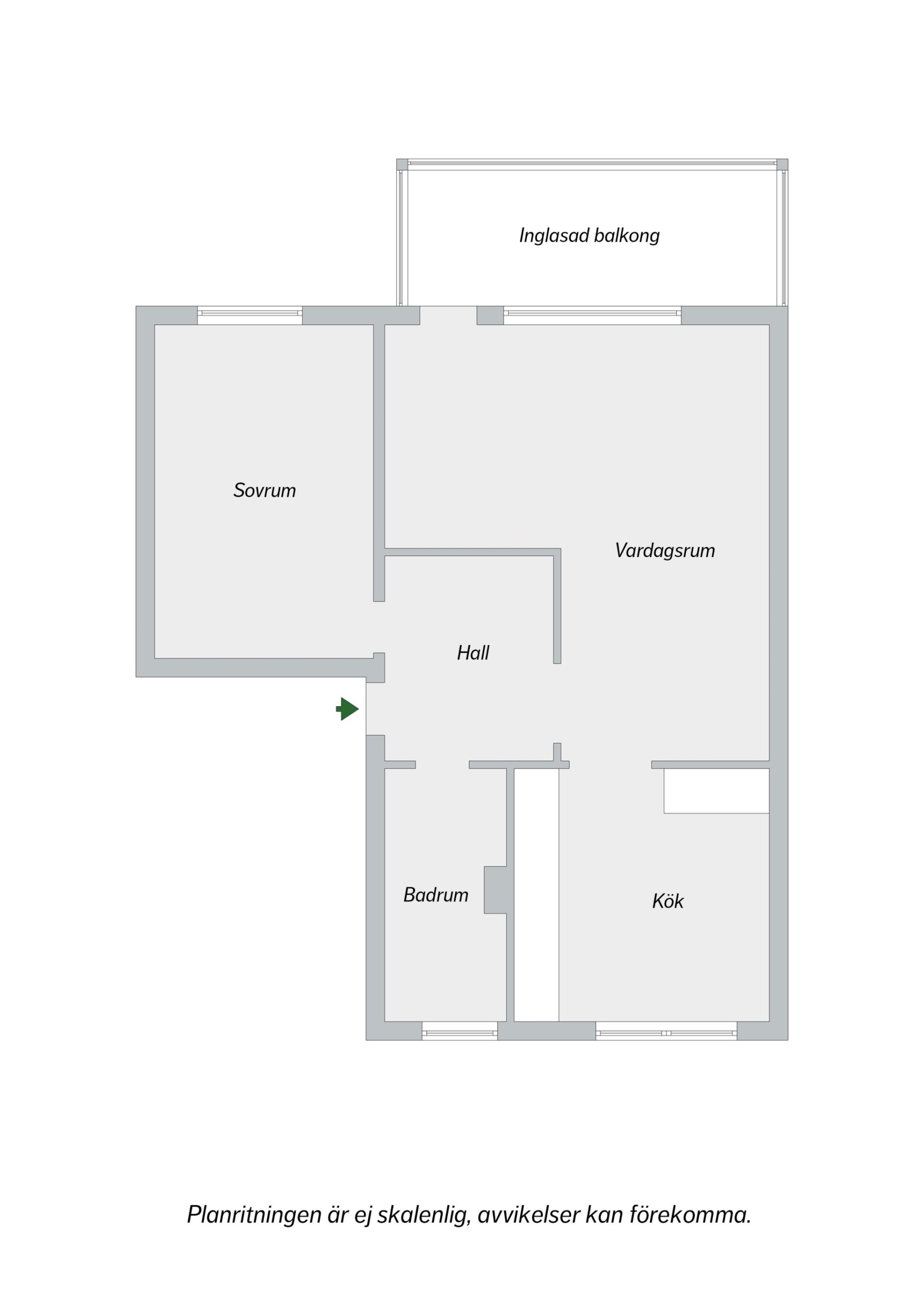 Lägenheten disponeras på följande sätt: