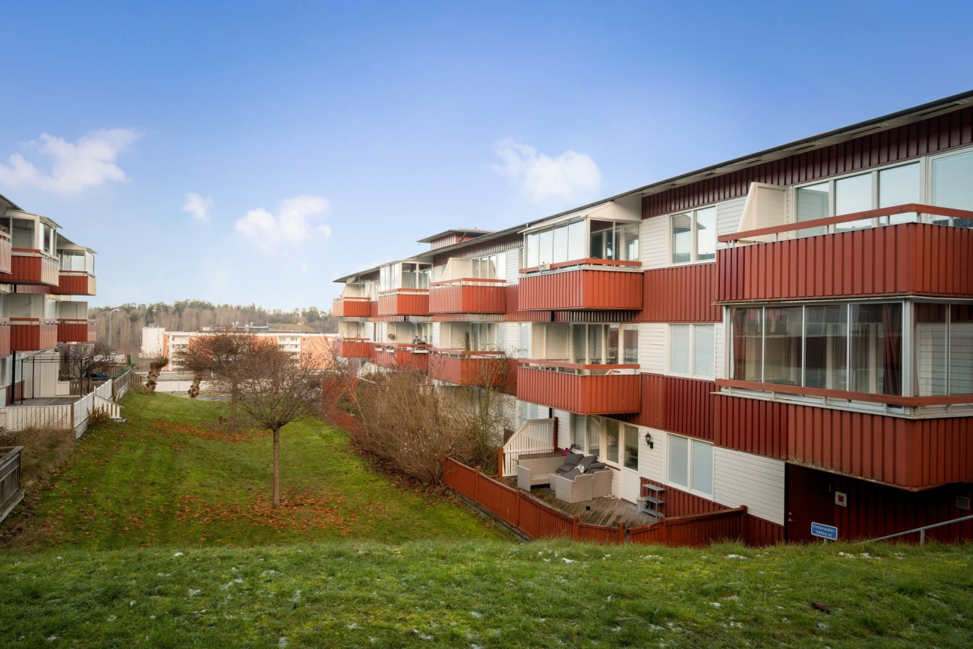 Rymlig inglasad balkong i västerläge.