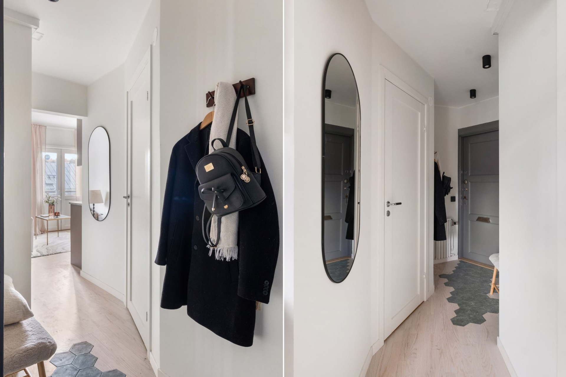 Välkommen till denna optimalt planerade tvårummare där varje kvadratmeter är genomtänkt och skapar en överraskande rymlig känsla. Det attraktiva hörnläget ger bostaden ett fantastiskt ljusinsläpp från två väderstreck och en härlig rymd som är ovanlig för storleken. Fransk balkong i vardagsrum/kök.