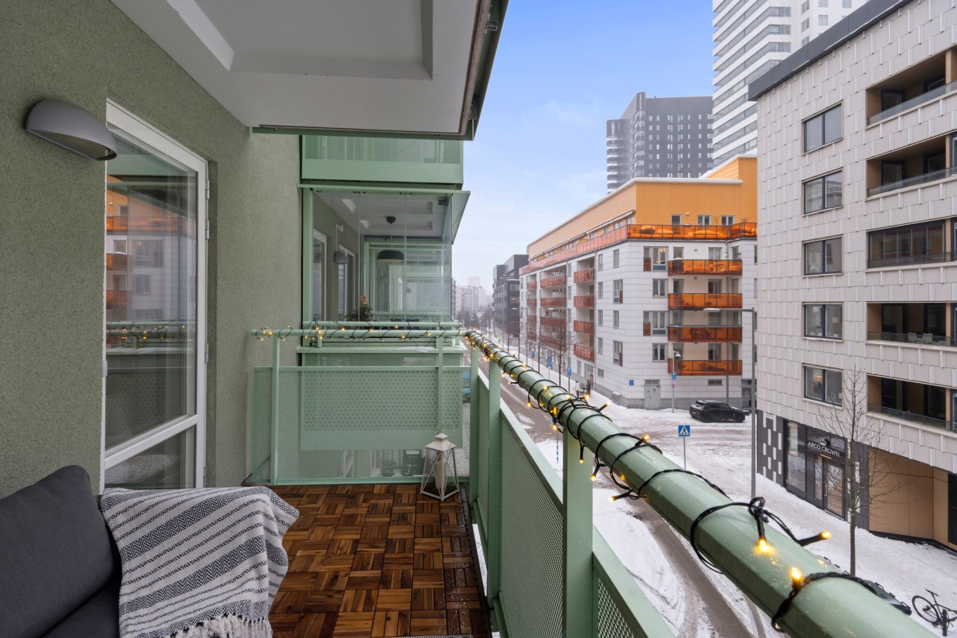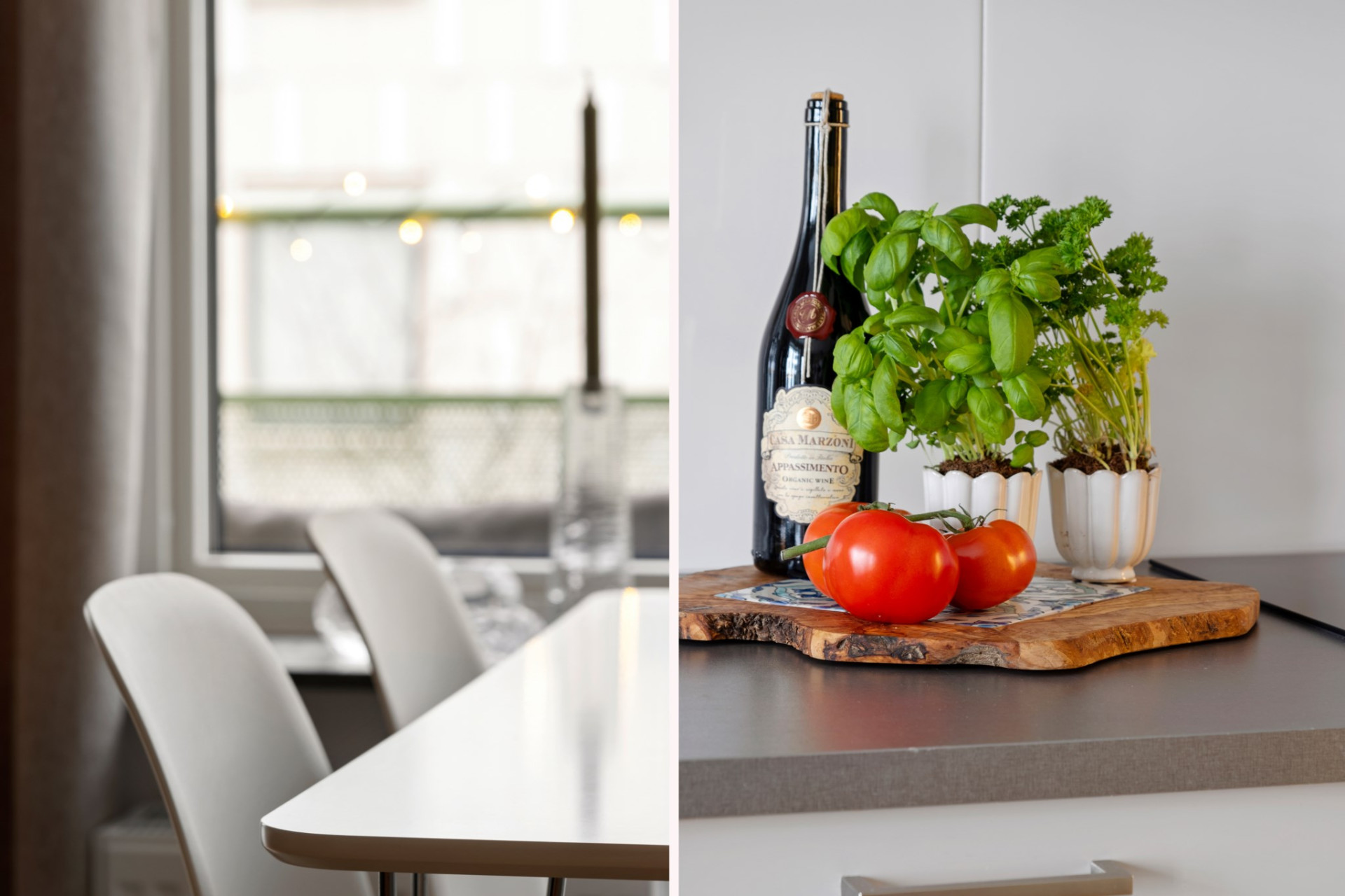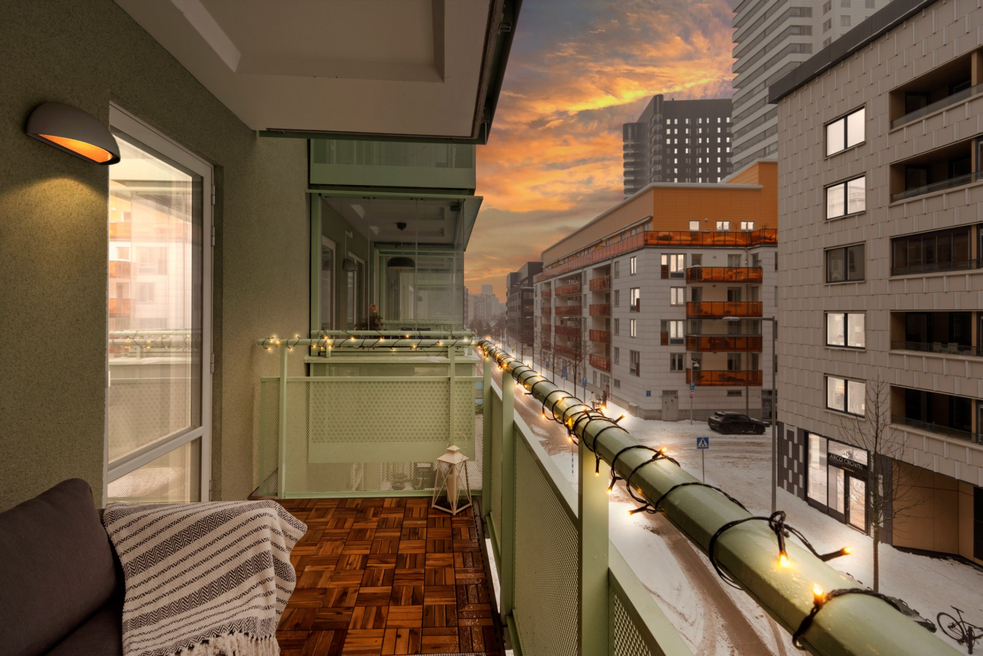 En stilfull balkong som erbjuder en exklusiv utemiljö med plats för både umgänge och avkoppling. Här skapas en harmonisk helhet mellan inne och ute, perfekt för såväl vardag som sociala tillfällen.